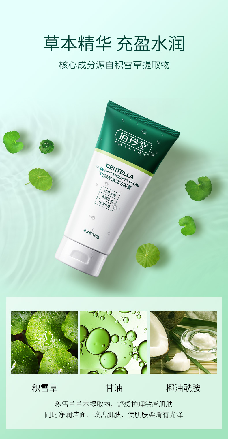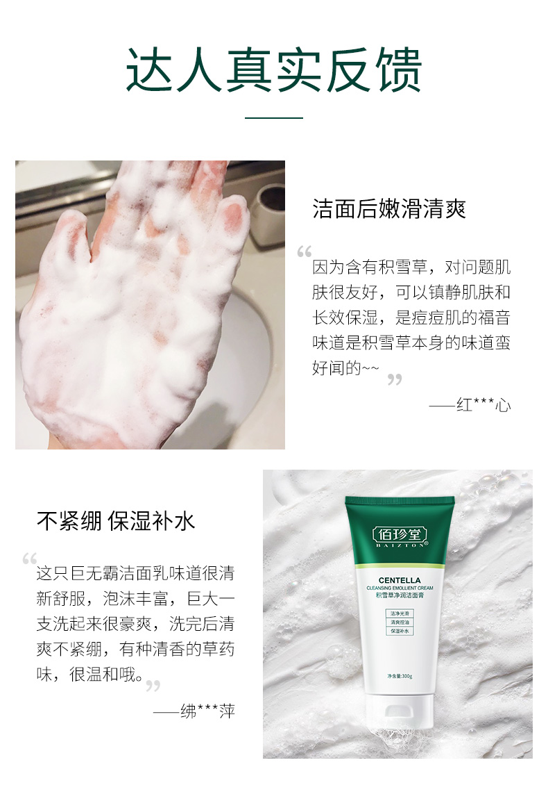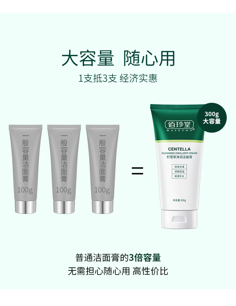 【屈臣氏同款89.9一只】超大容量300g,第二件10元,佰珍堂积雪草洁面膏,积雪草精华控油抗痘补水,6种植萃力,深层温和清洁不刺激,控油去螨,清透毛孔,不紧绷,男女通用,赶快囤起来吧【赠运费险】