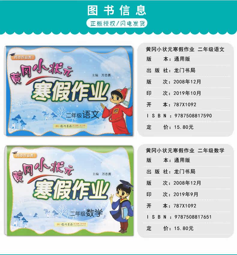 【2本】黄冈小状元寒假作业二年级语文数学