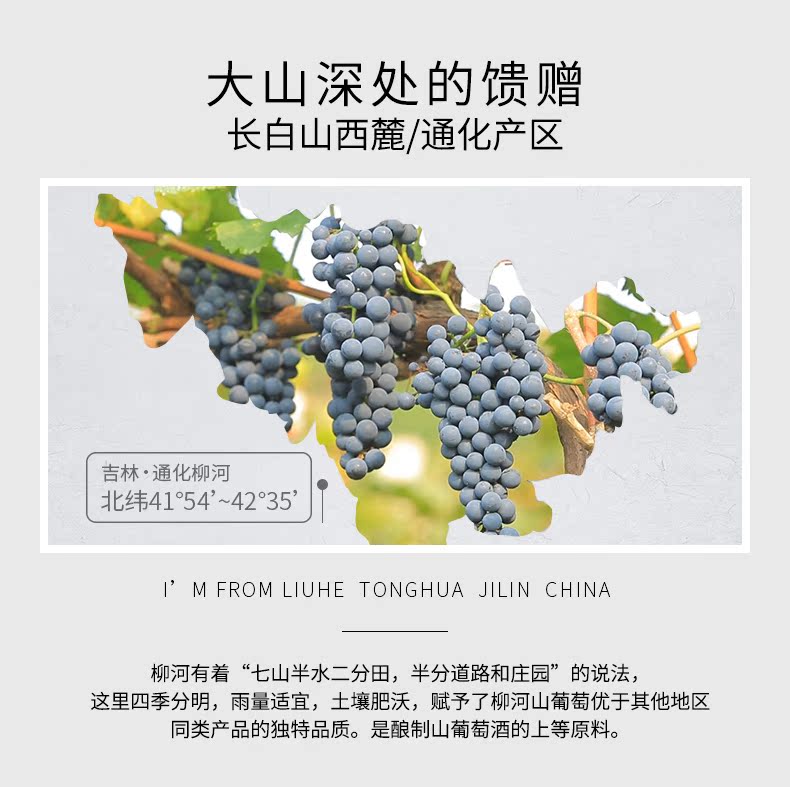【出口红酒】雪后山葡萄,原汁精酿,谢绝勾兑,原产地发货,来自大山深处的馈赠,不是所有葡萄酒都与法国波尔多纬度那么接近。