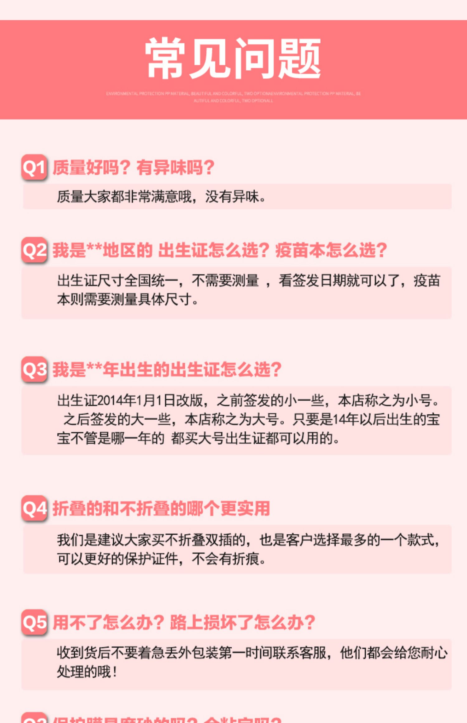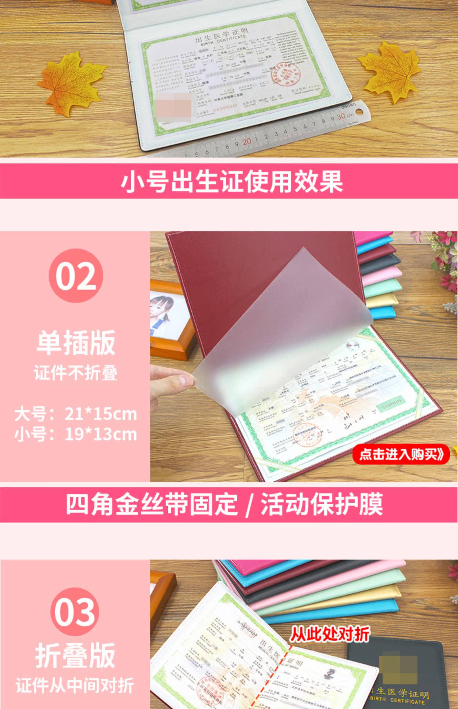【赠送防潮套】多款多色可选,环保皮革,安全,做工精巧,耐磨防滑,随心放,方便携带,优质皮革,完美剪裁,字迹清晰,经久耐用,保存持久,伴随孩子成长的每一步,妈妈再也不用担心宝宝的证件啦!