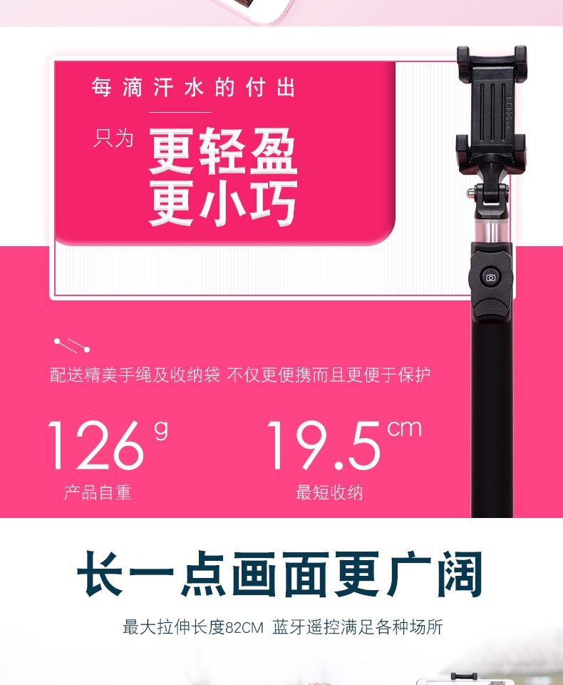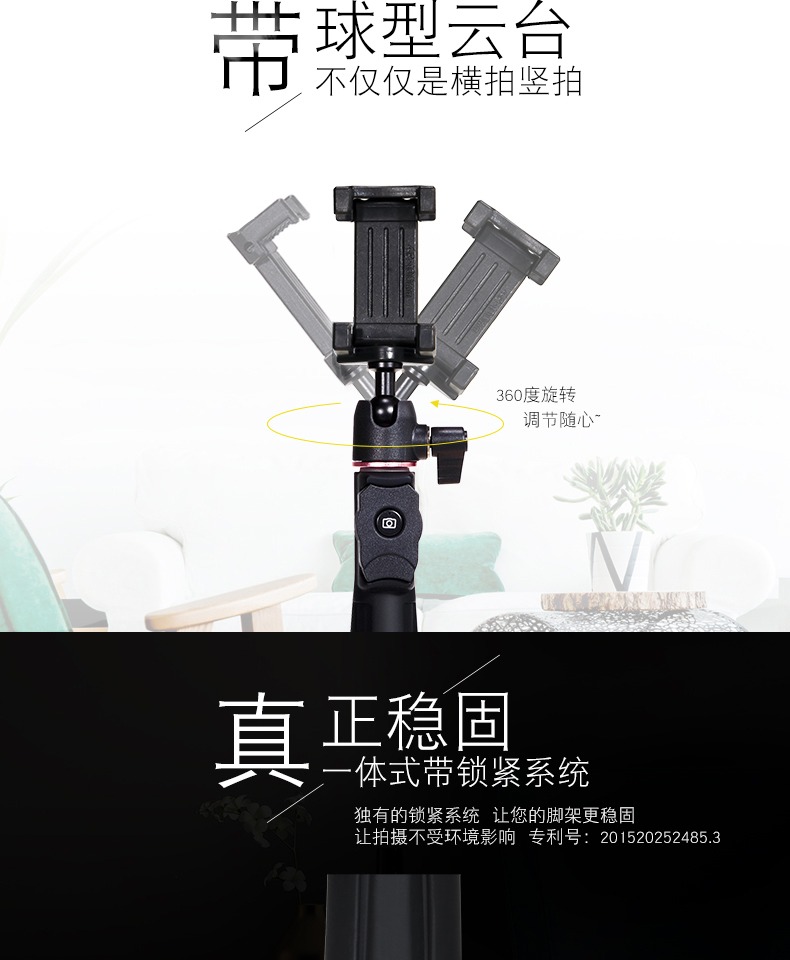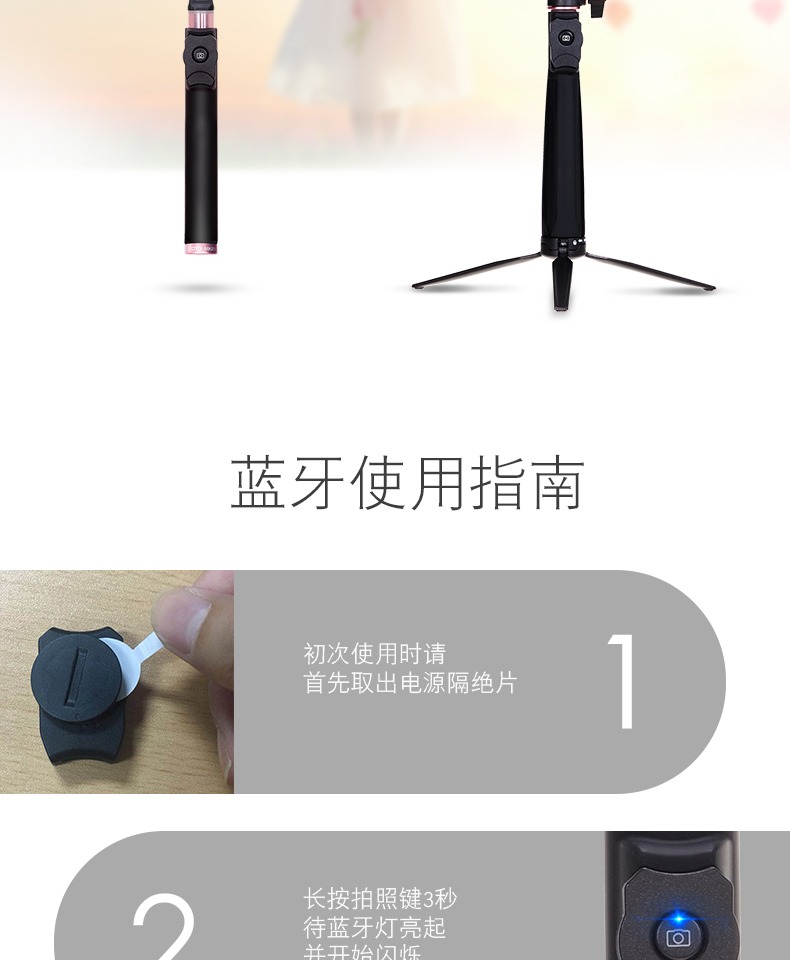 蓝牙控制,360°随心旋转,坚固耐用,操作方便,蓝牙轻轻一按就能实现远程拍摄,携带方便。【赠运费险】