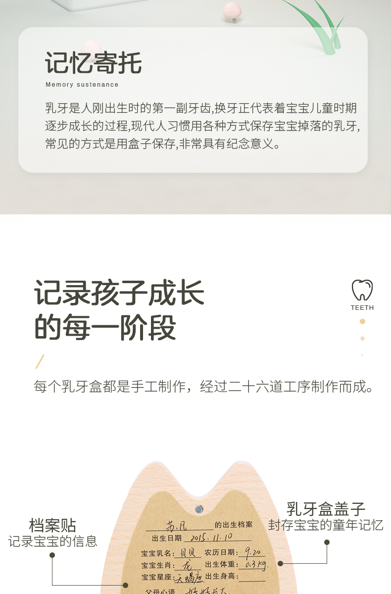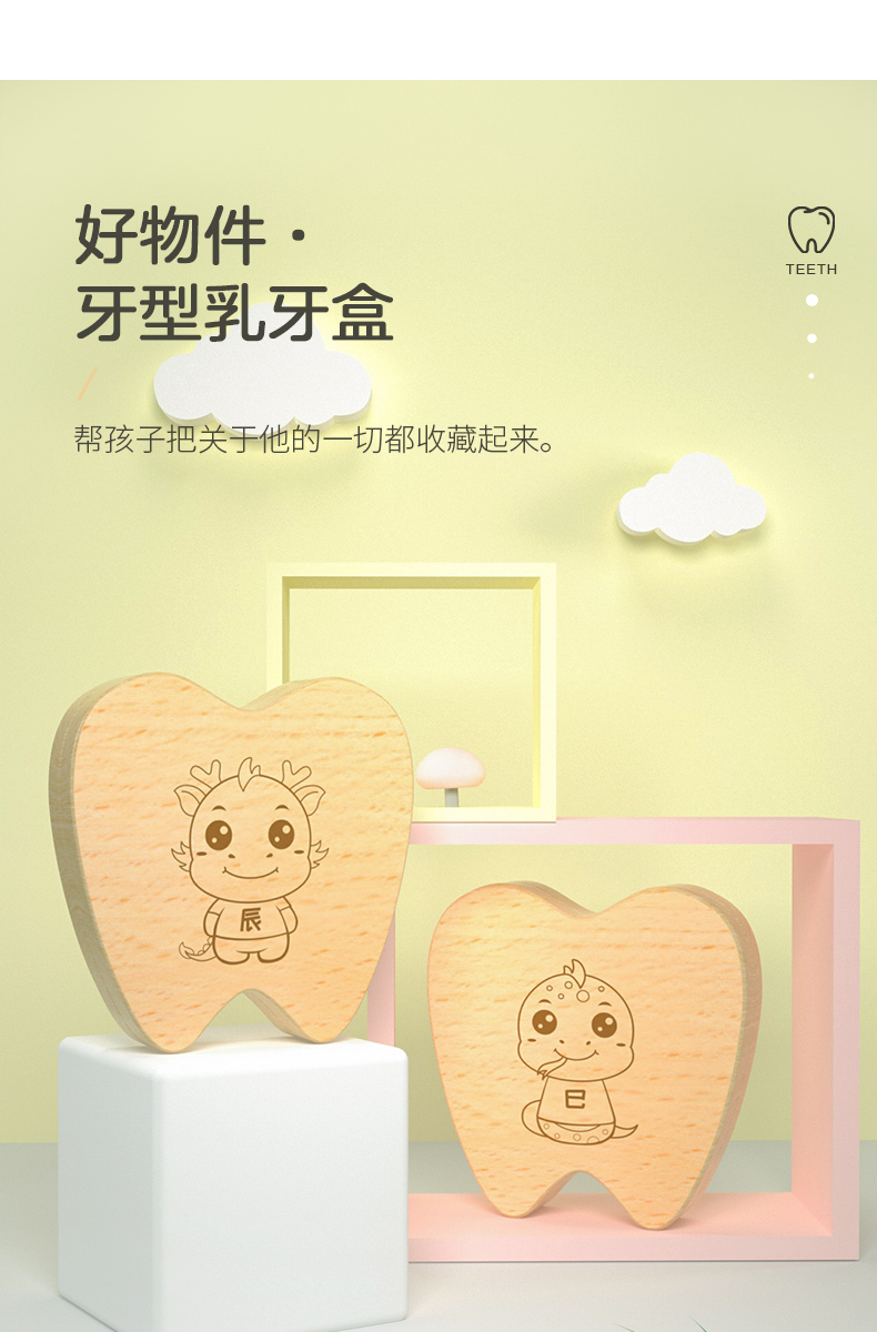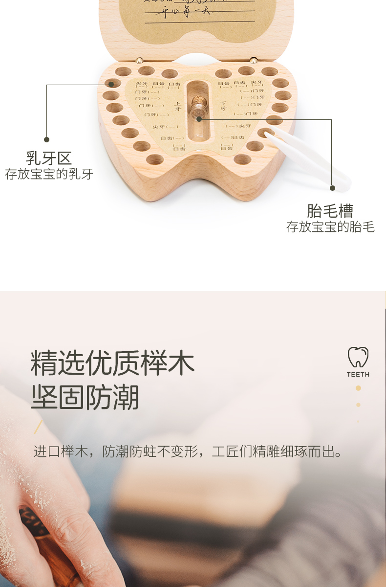 【第二件半价】女孩男孩纪念乳牙盒,儿童保存收纳胎毛收藏盒,宝宝掉换牙齿盒子木质