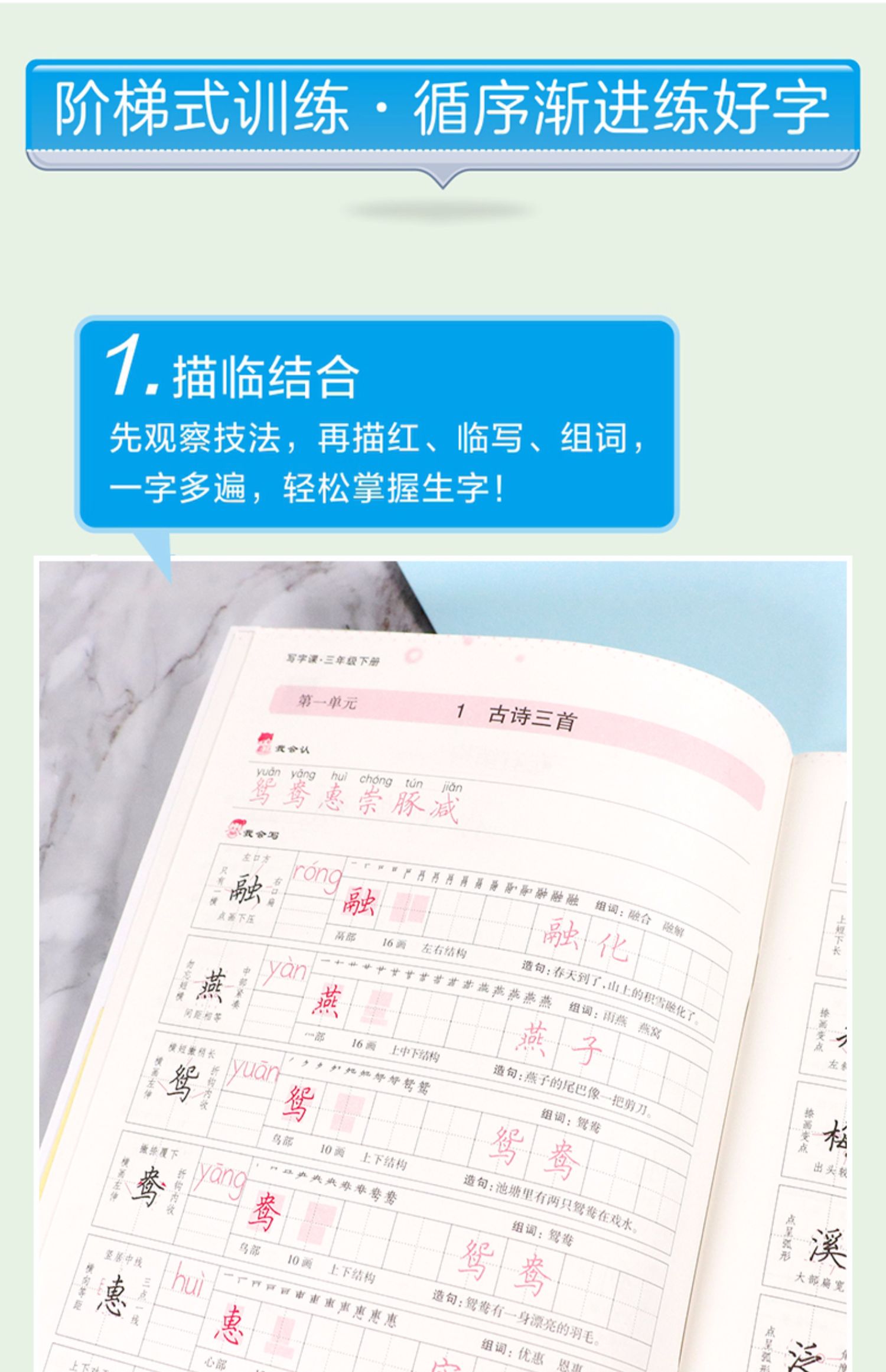 教材同步,轻松练字,不蒙纸,更直观,有效预防近视,让孩子健康练字!阶梯式训练,循序渐进练就一手好字。【赠运费险】