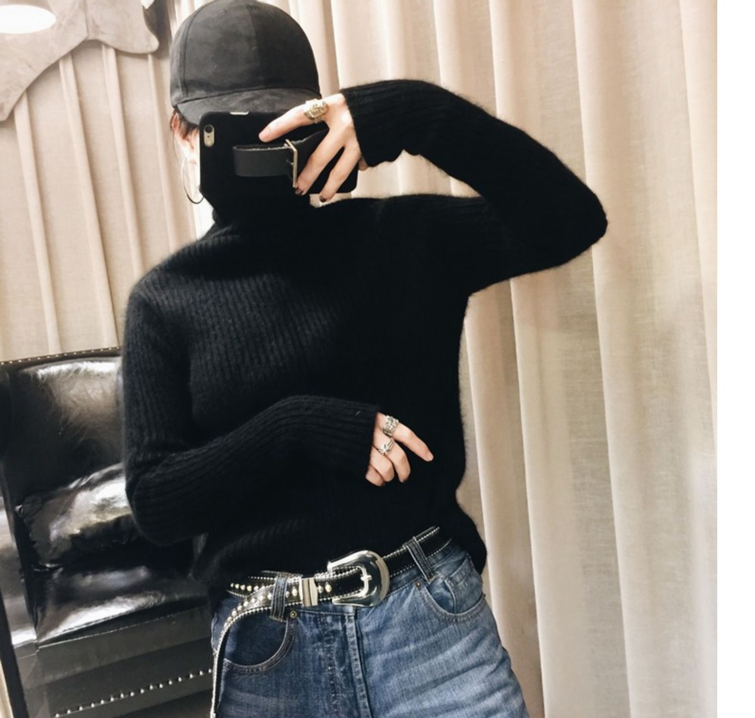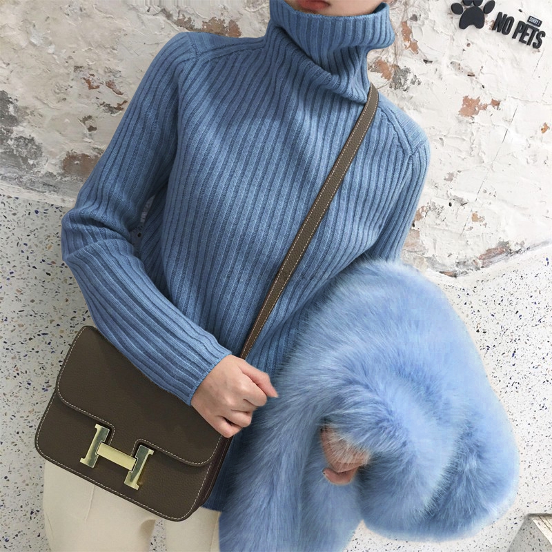 秋冬宽松加厚慵懒风高领毛衣女