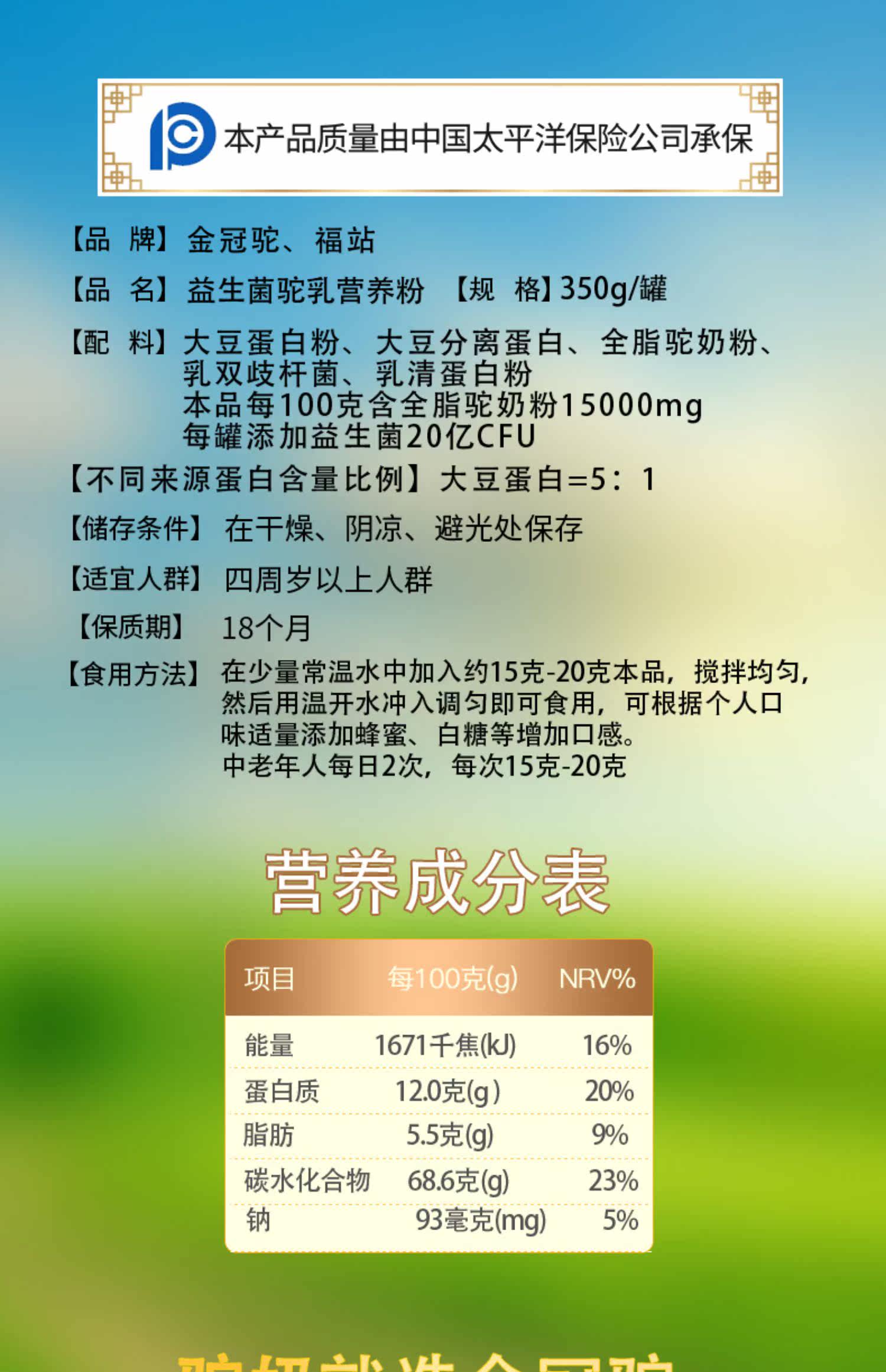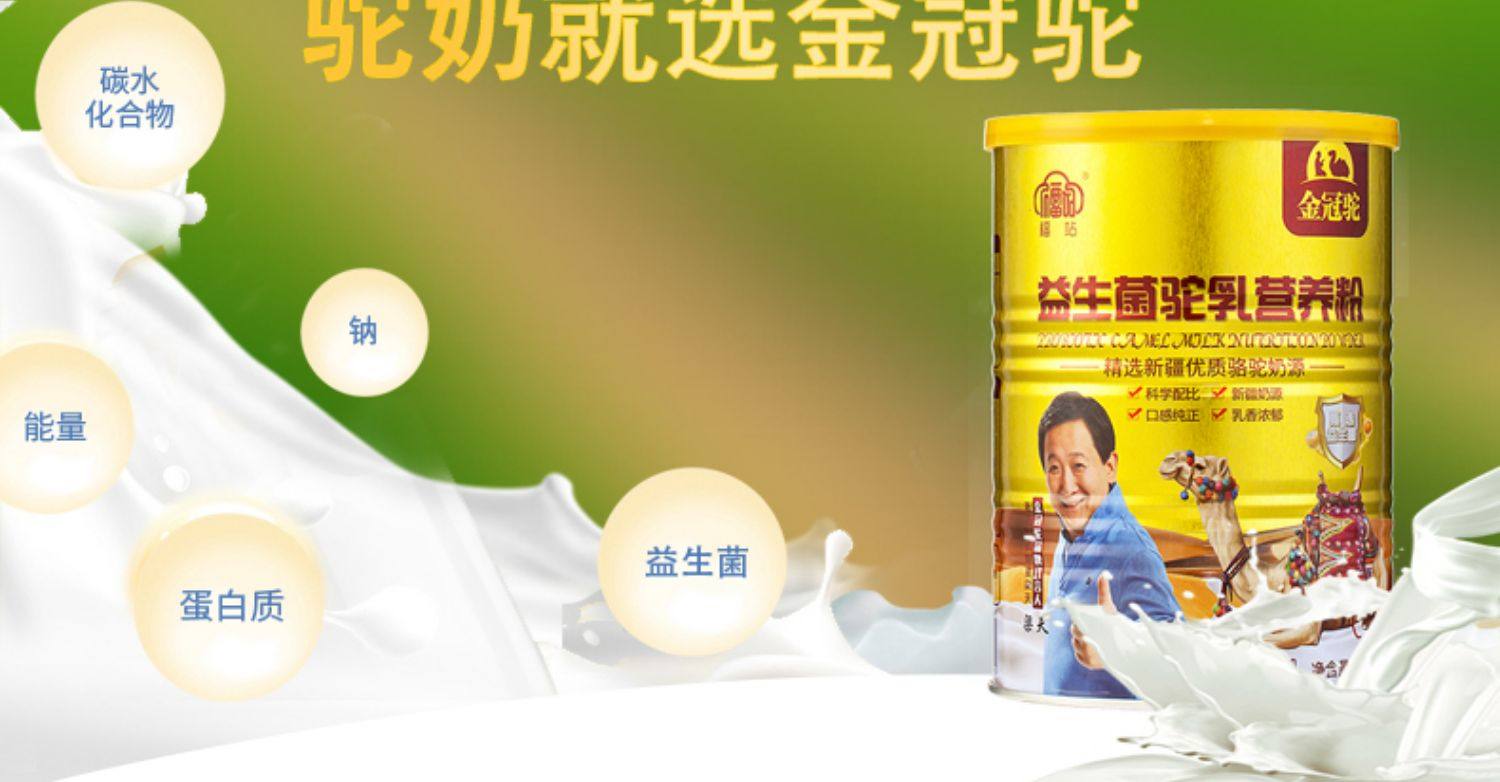 CCTV17上榜品牌!著名影视笑星梁天倾情代言驼奶粉,源自新疆优质骆驼奶源,中国太平洋保险承保,为您的健康安全保驾护航!特添加益生菌配方,更易于肠胃吸收天然新疆奶源骆驼奶。