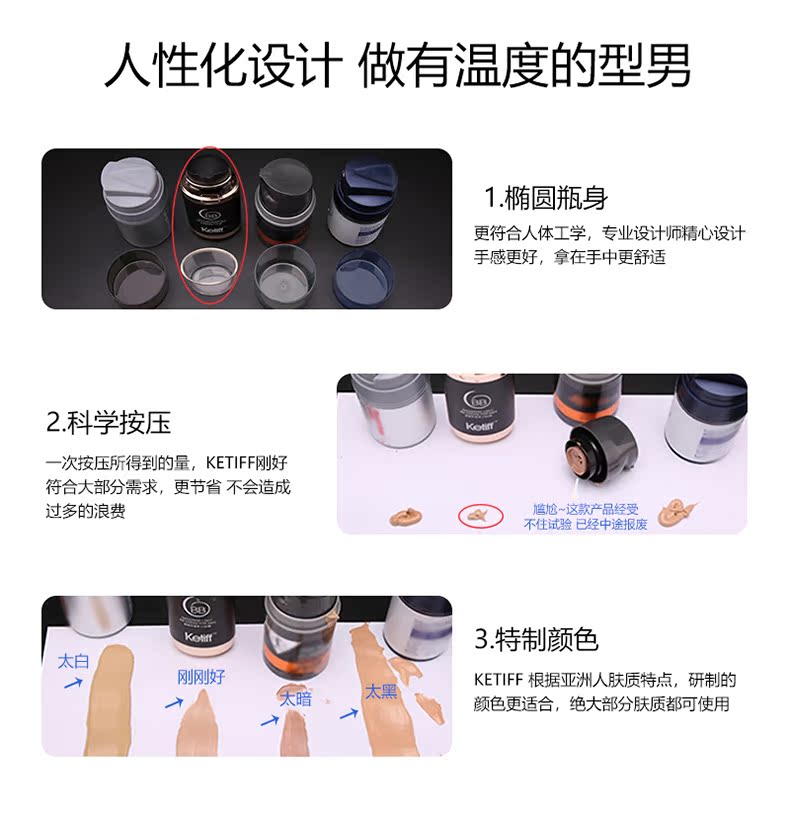 柯帝夫男防水遮瑕素颜霜,轻薄自然裸妆,遮盖瑕亮肤更自然,防水防汗,轻薄透气不脱妆,一整天都是自然好肌肤!【赠运险费】