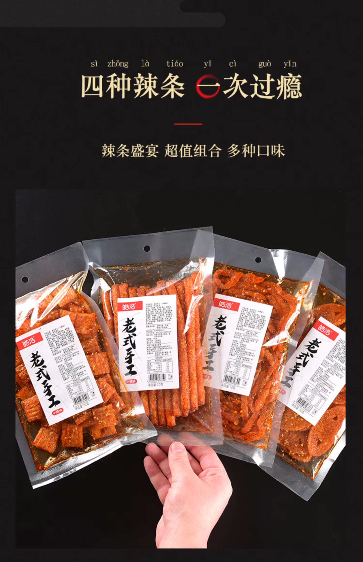抖音同款辣条零食混合装4包,券后5.8/4包,吃完流口水的多口味辣条,纯手工制作,精选食材,传统工艺做成,口感劲道十足!新鲜发货!儿时味道【赠运费险】