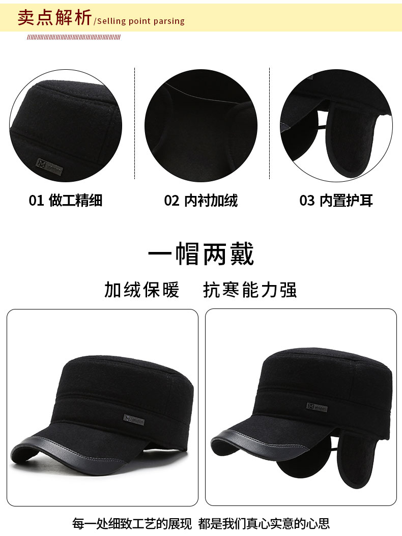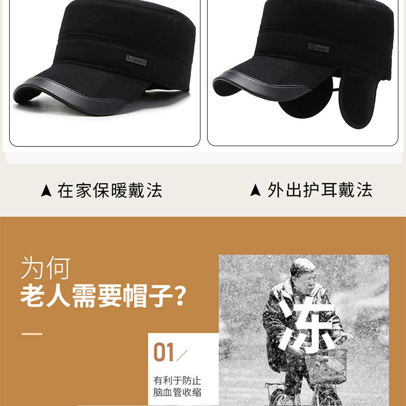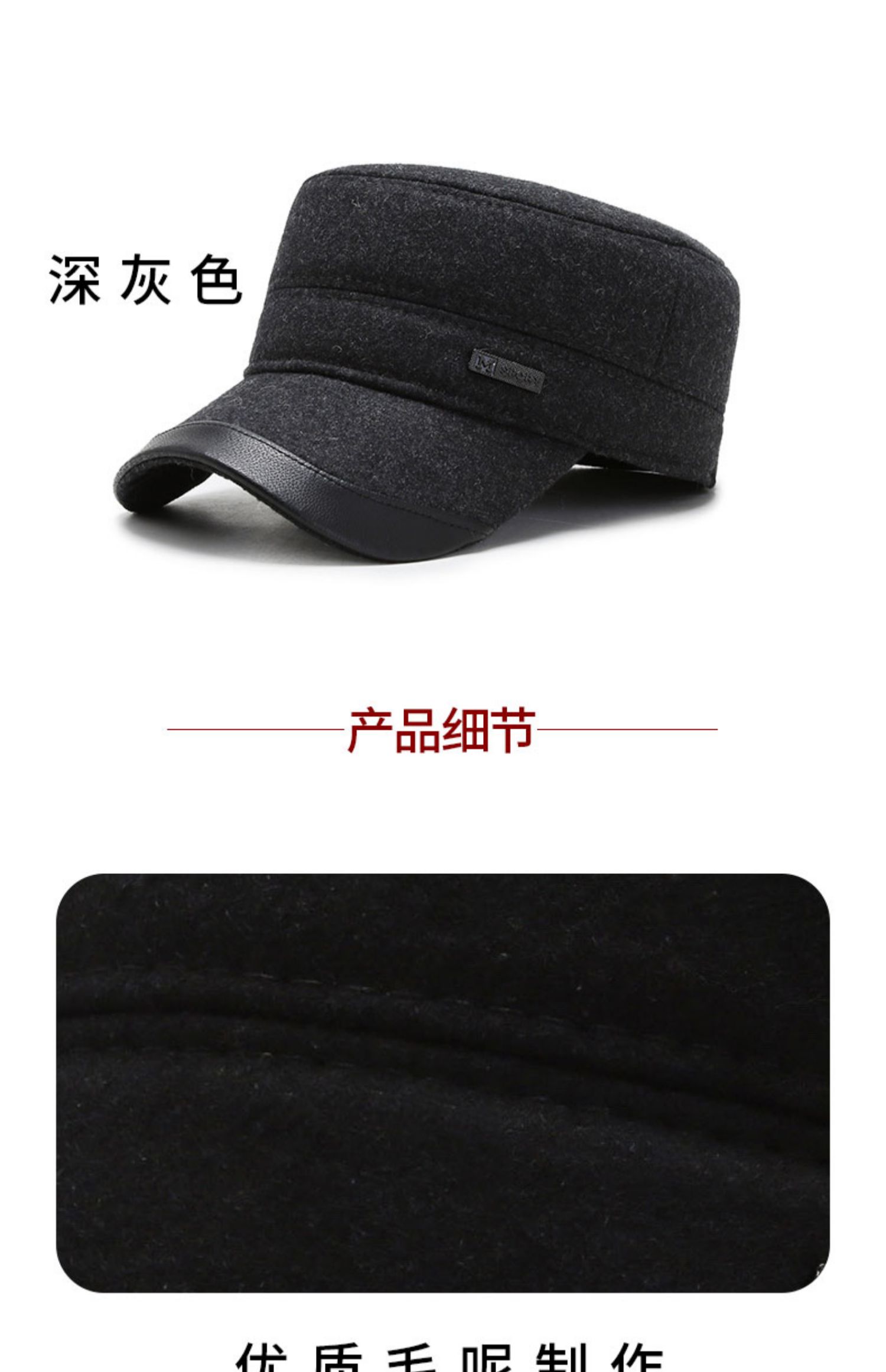 快给爸爸爷爷姥爷准备起来。冬天给家人一些关爱,毛呢平顶帽,还带护耳哦,加绒的超厚实。送孝心shou选!