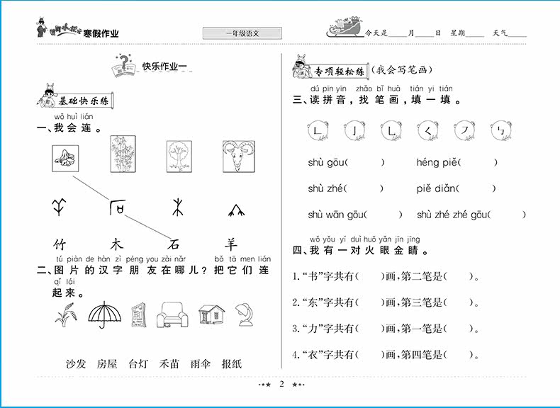 【新华书店正版】黄冈小状元寒假作业【语文数学】共2本,紧扣教材练点,关注教师讲点,同步练习册达标卷,强化考试考点,巩固知识从娃娃抓起!