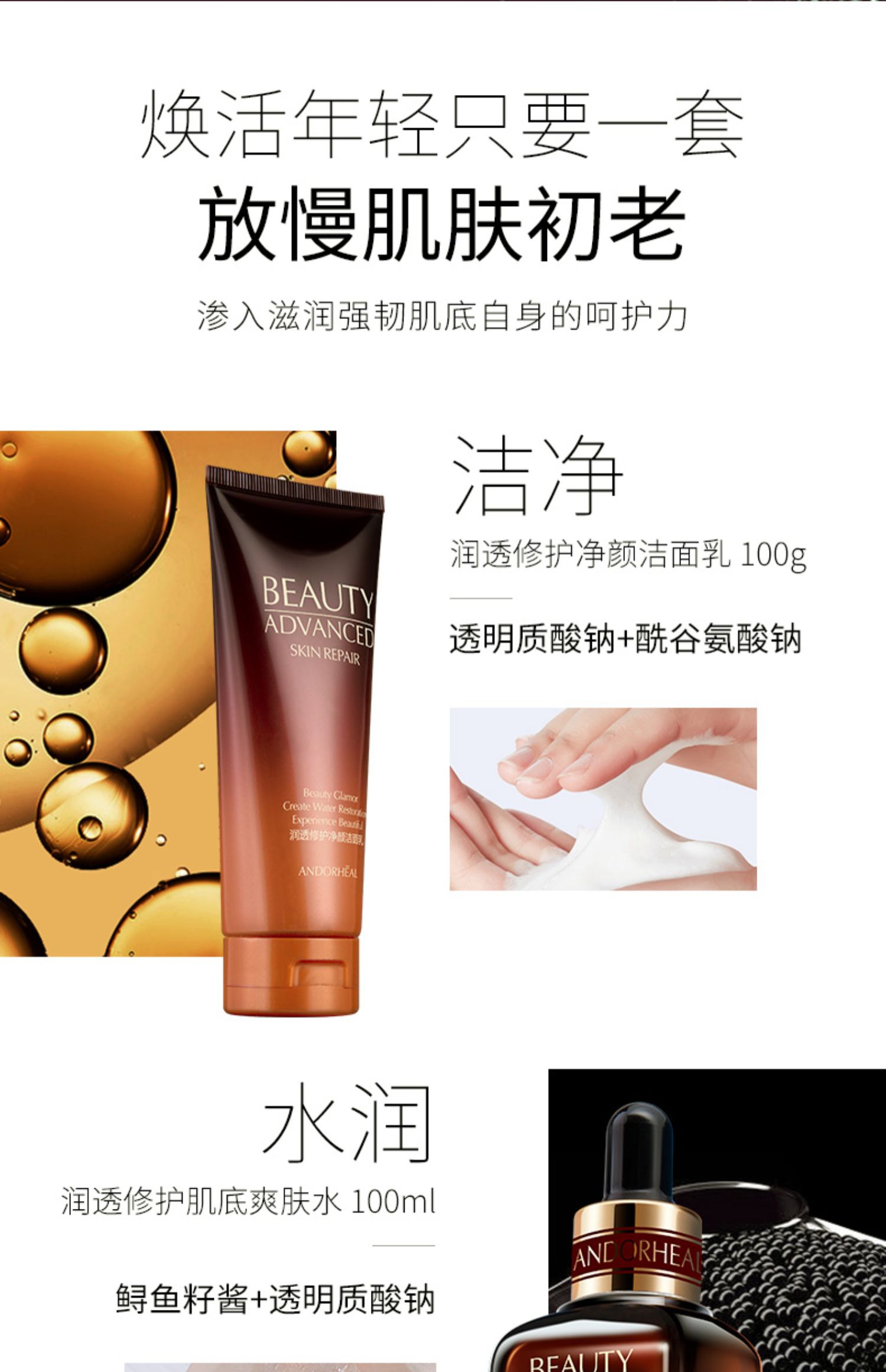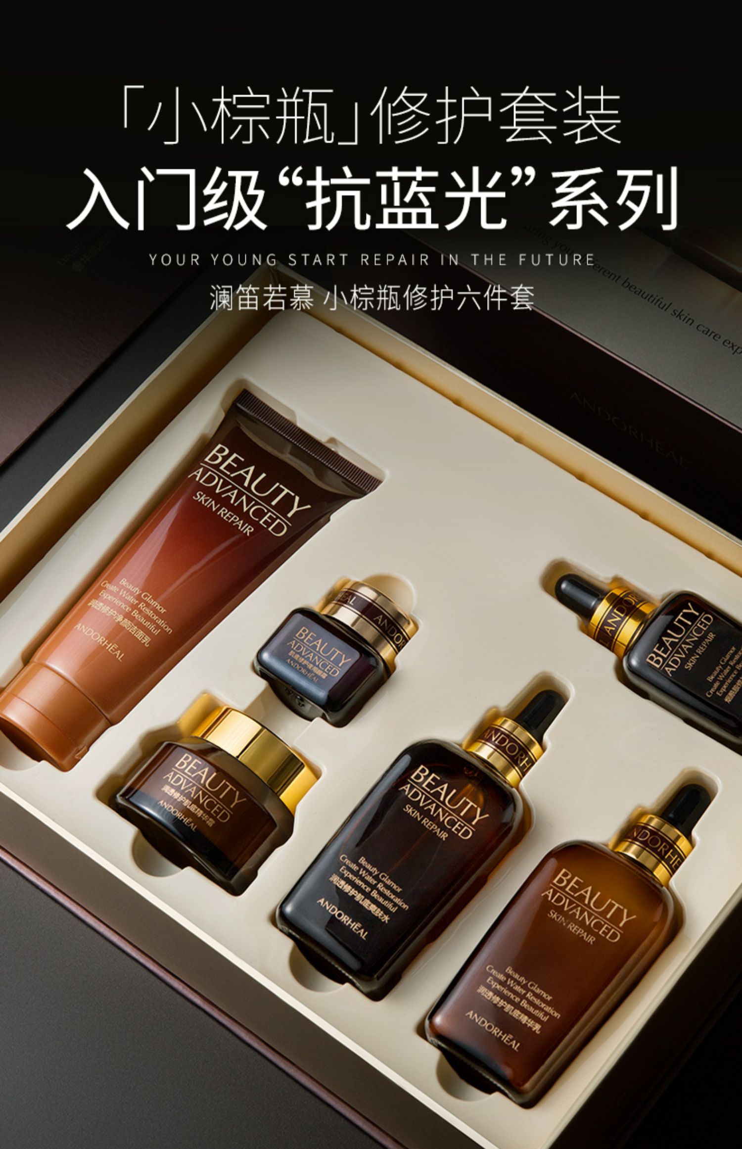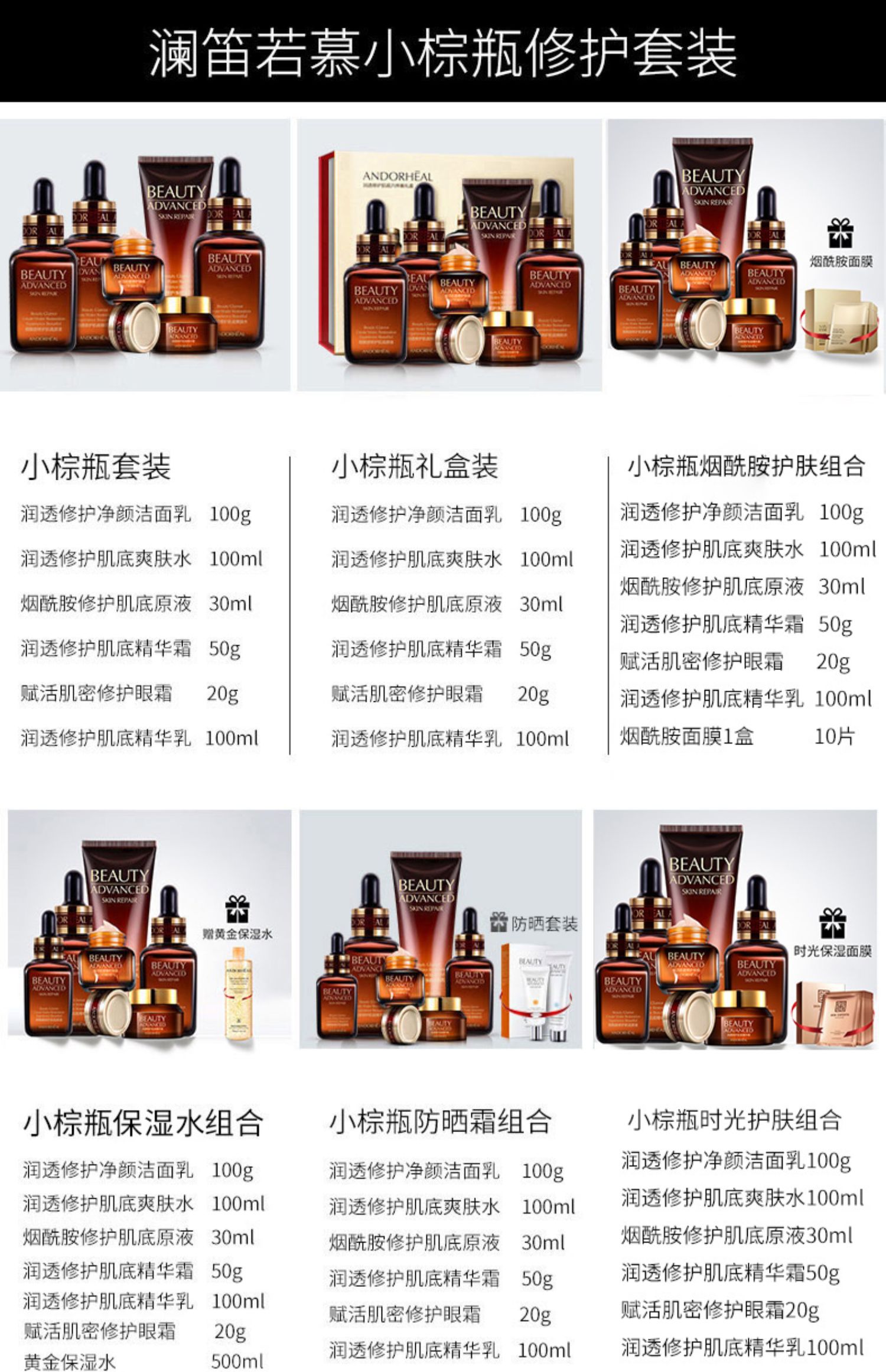 小棕瓶护肤6件套,洗面奶+爽肤水+乳液+面霜+眼霜+精华液~!抗衰老系列全部带回家,使用起来很补水呀,超值了!