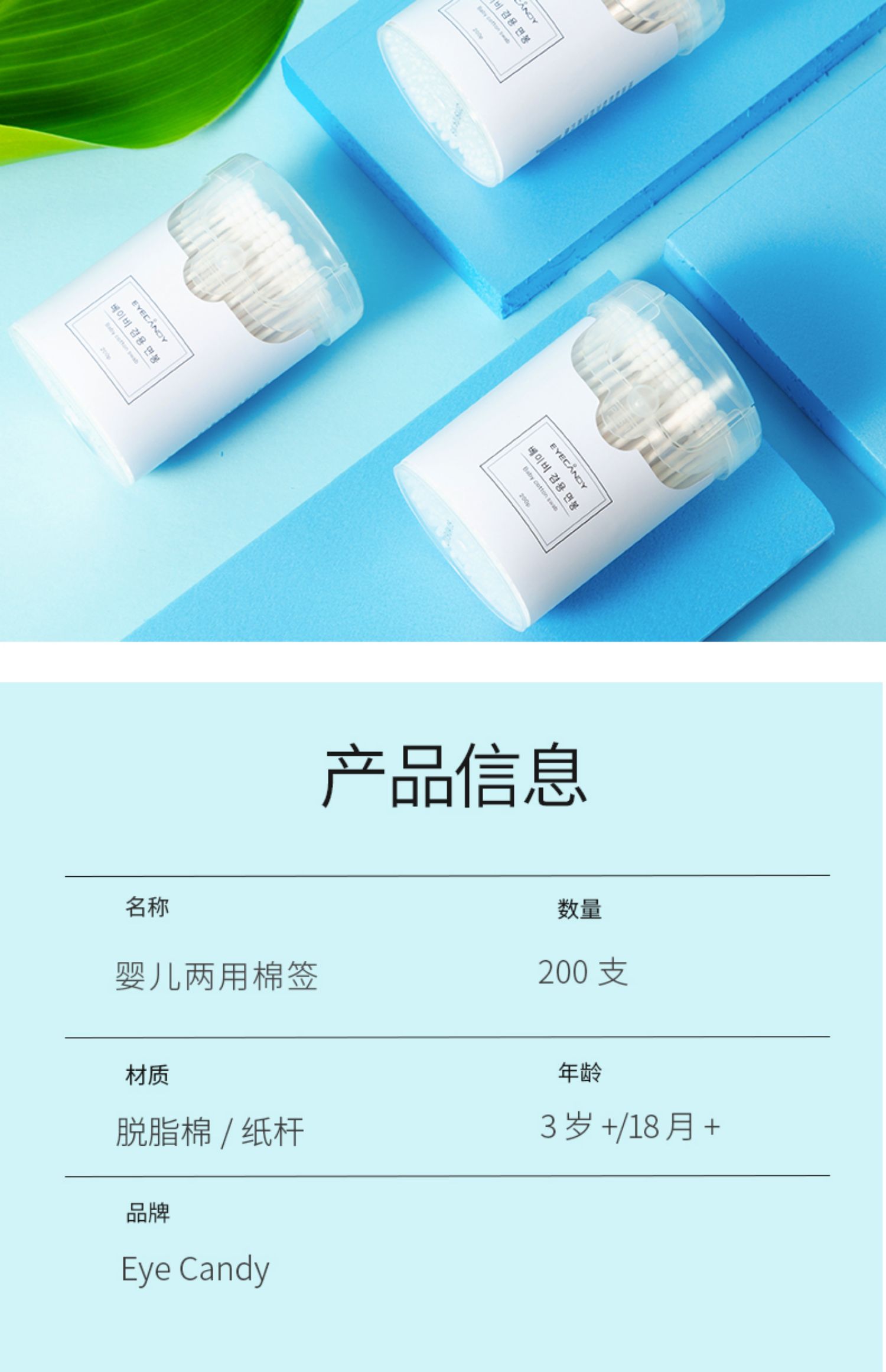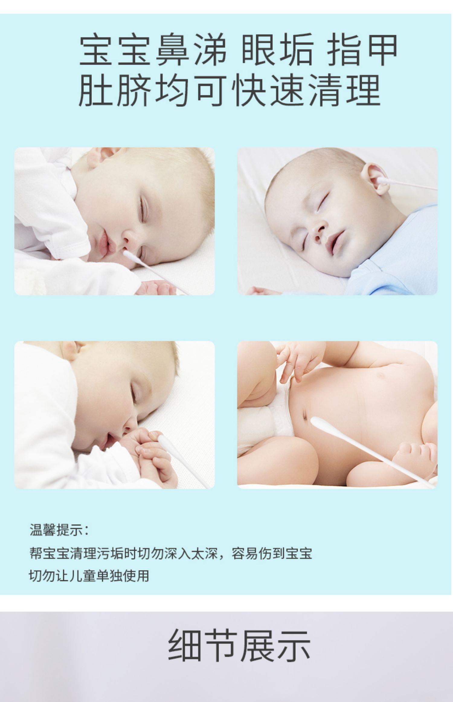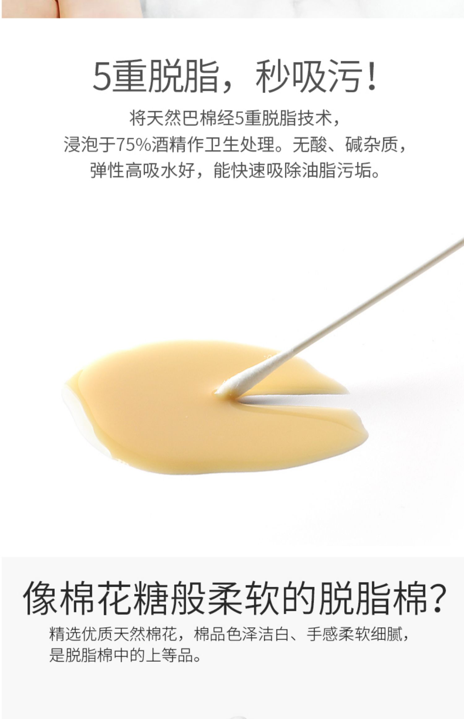 精选优质天然棉品,色泽洁白手感柔软,双头造型一头螺旋,旋转使用更易吸纳污物,一头细圆细小部位易涂抹,原浆纸轴高韧不断,小宝宝清理粑粑,大宝宝美妆修容,双头200支能用400次