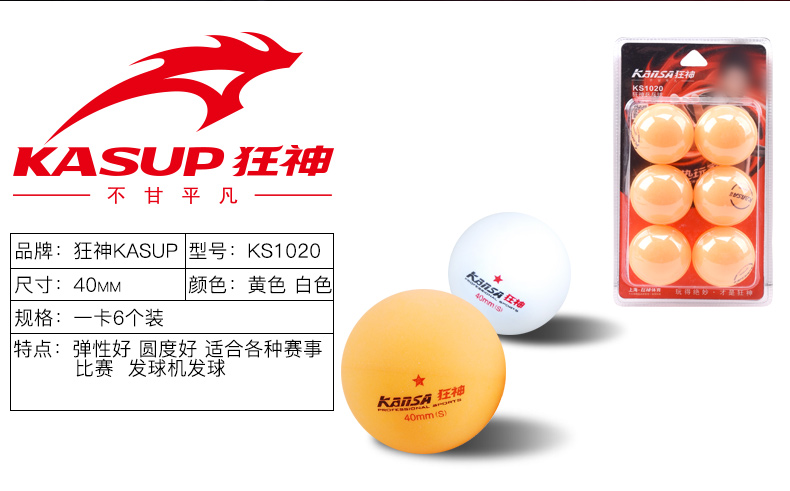 【狂神】训练乒乓球6只,适用于初学者和赛级选手,硬度高出球快更结实耐打,球体硬度好,落点准,弹性佳,旋转强,重心准确,弧圈快攻皆可,适合各种赛事比赛【赠运费险】