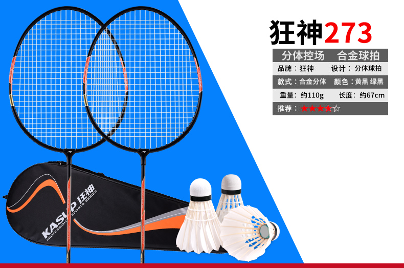 买即送~拍包+3球,碳合金中杆,合金羽拍,圆形拍头,流体性拍框,内置T型接头,拍感稳挺,握度轻盈,超强挥拍感,超强耐打,掌控球场!【赠运费险】