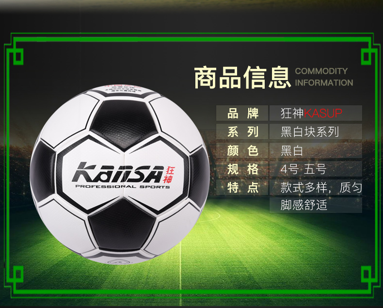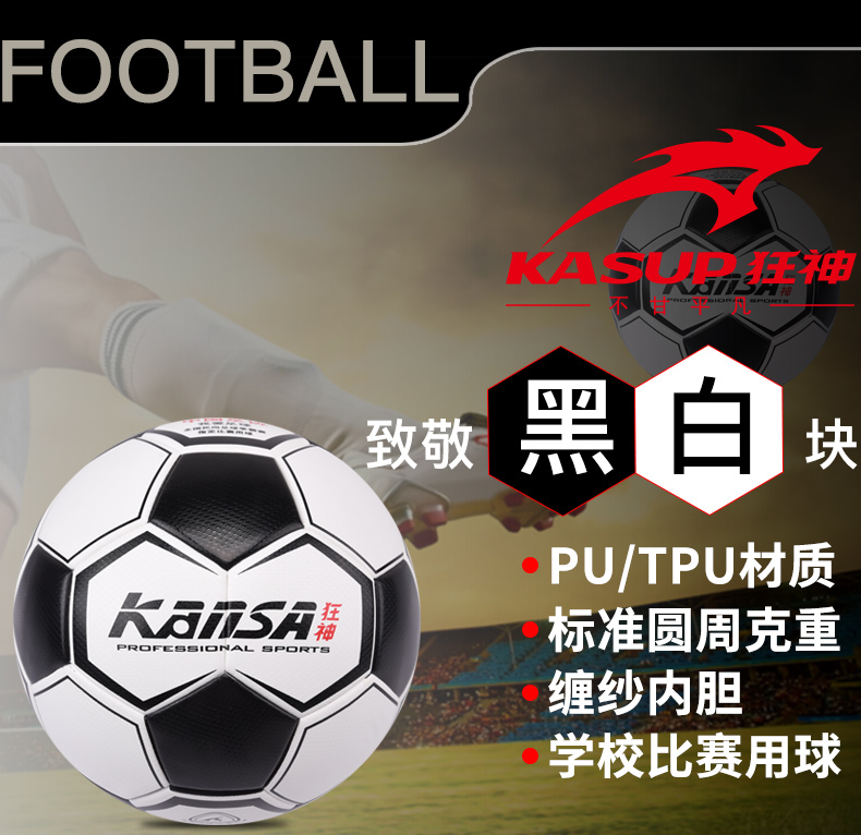 狂神4号学生青少年足球,选PU材质,无缝贴皮,内胆圆度高,黑白快设计,材质均匀,轨迹稳定,脚敢舒适,适合多种场地【增运费险】