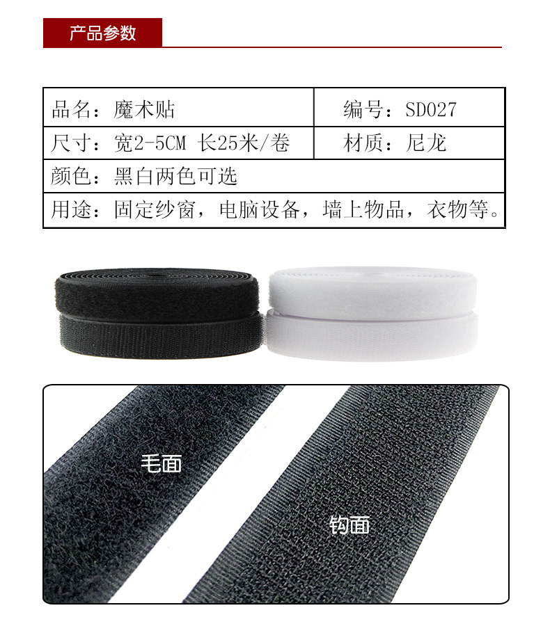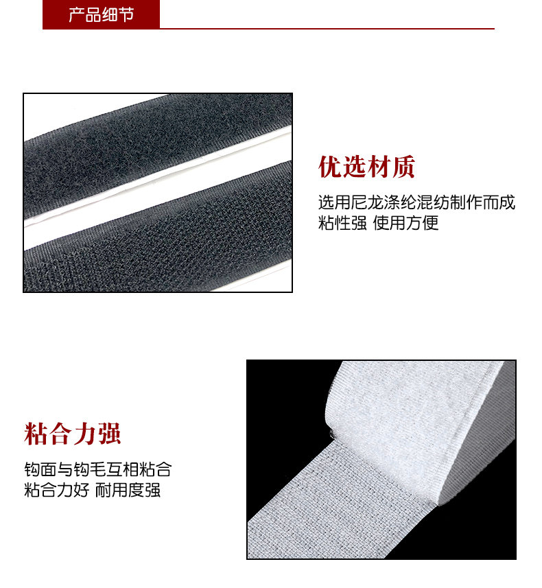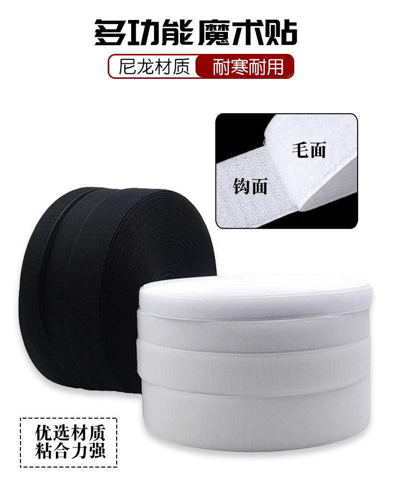 多功能魔术贴,优选材质,粘合力强,选用尼龙涤纶混纺制作而成,粘性强,耐用度强,背胶撕去不沾墙,被贴物件依旧如新,方便实用~