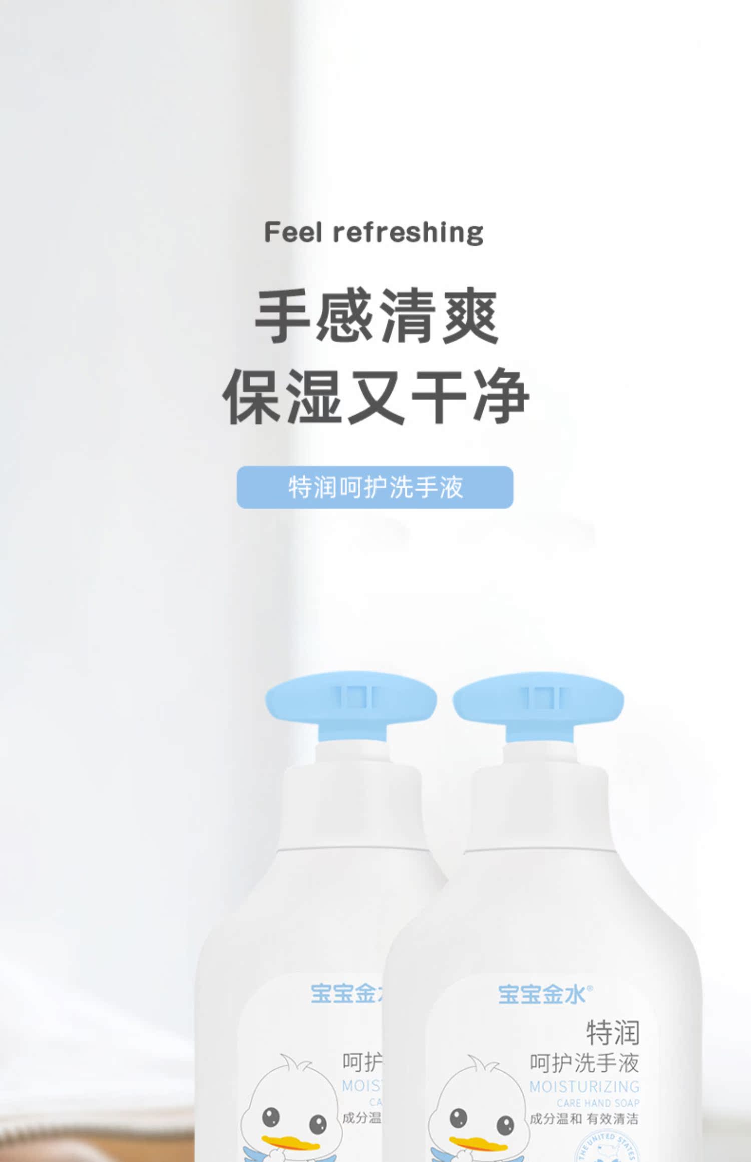 宝宝金水老品牌!:孩子玩耍后老是不洗手,小心病从口入!特润呵护洗手液!植物精华,去污去味!温和呵护全家适用!呵护肌肤柔滑,带来怡人感受,抑菌泡沫,给全家健康保护!