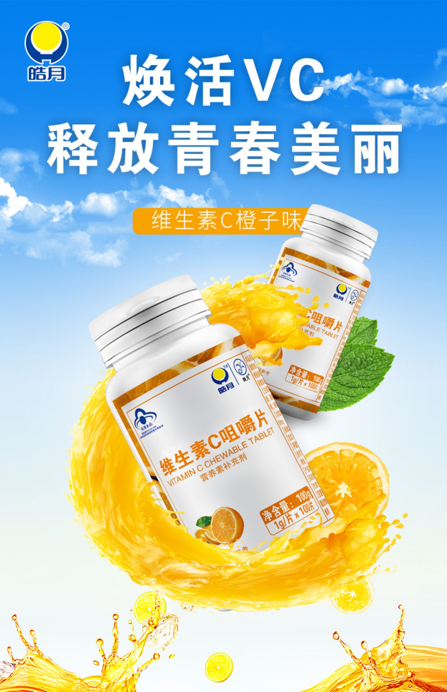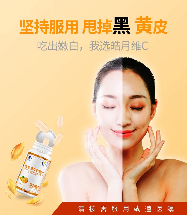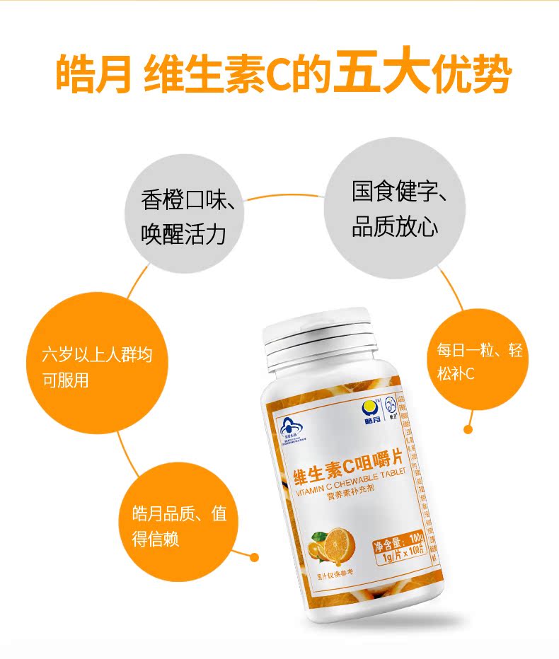 【100片装】88会员节福利,专注好VC,酸甜香橙味,轻松补充日常所需维生素C,有助于维持皮肤黏膜,骨骼和牙龈的健康,防止坏血、提高免疫力,美白抗衰老,好肌肤吃出来