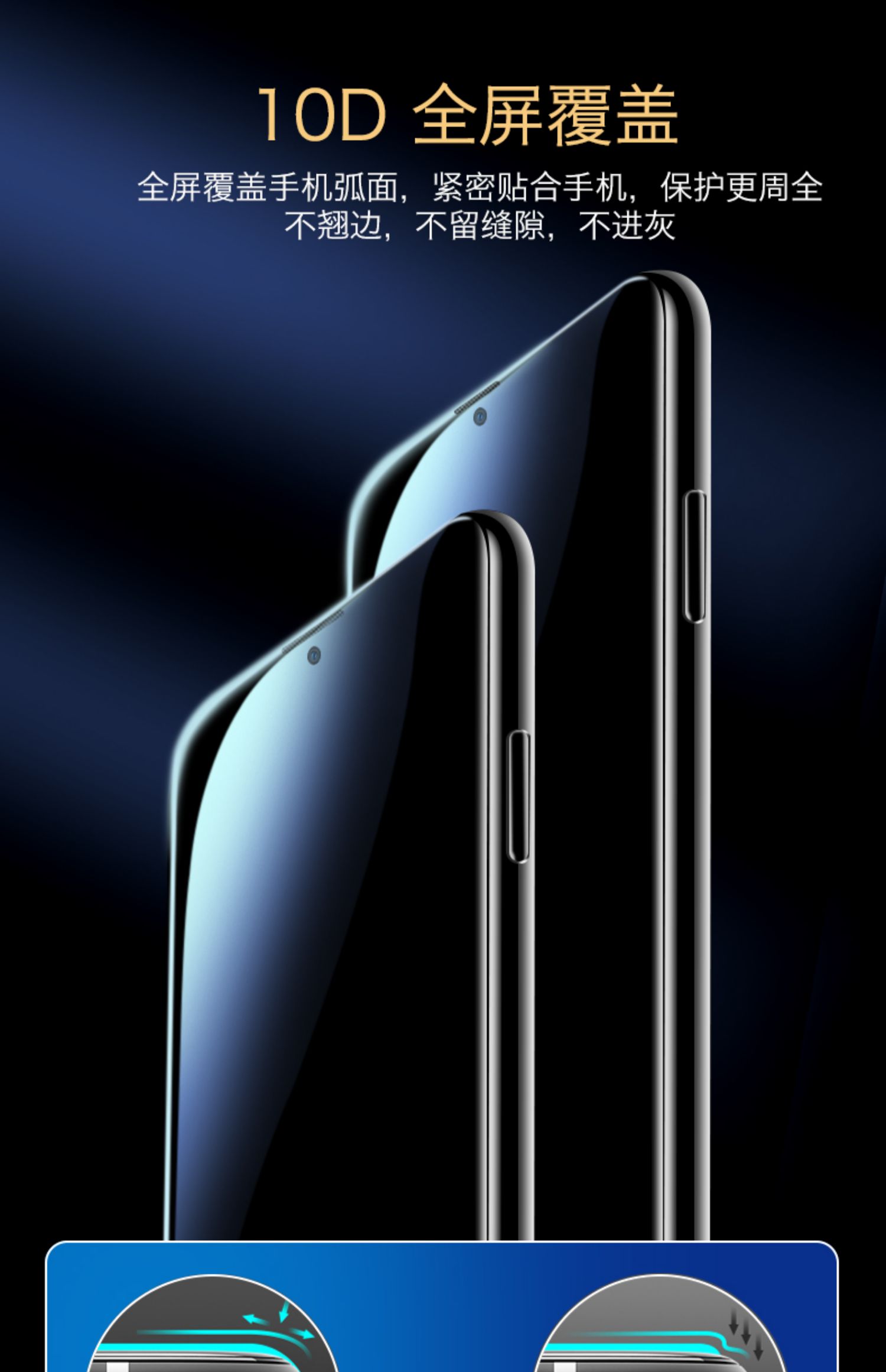 10D全屏覆盖,防指纹强防爆,不碎边不碎屏,还原裸机手感,贴合屏幕不留水印,保护手机从选择一张好膜开始