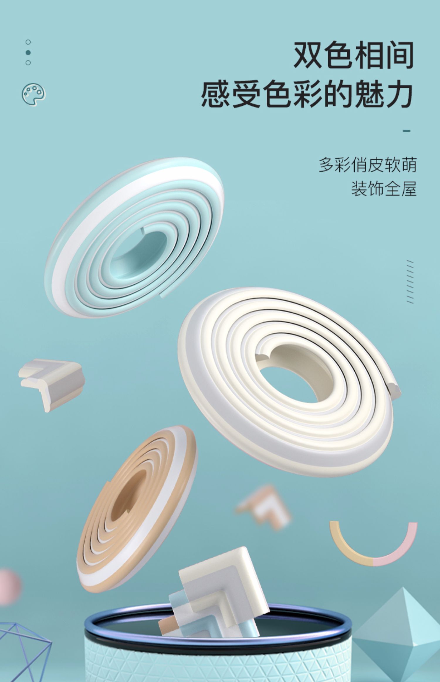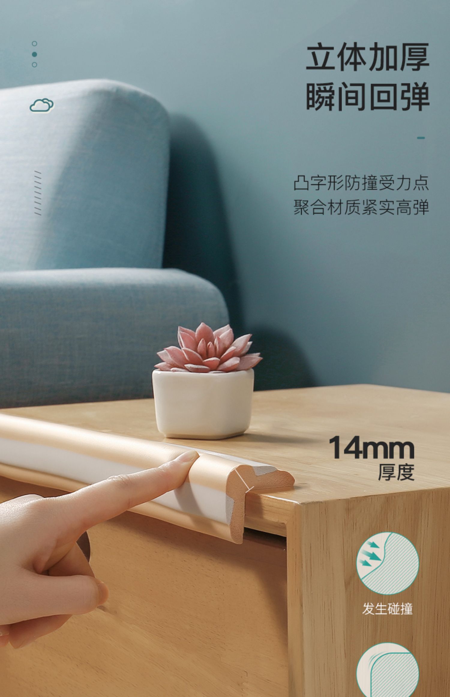 【今日推荐】采用环保无毒海绵,不含甲醛,高弹柔软,油渍水渍一擦即净!适用于家里的桌子边,柜子边,墙边都是隐形的危险,有了防撞条,宝妈可以放心让宝宝到处爬了,呵护宝宝快乐成长。