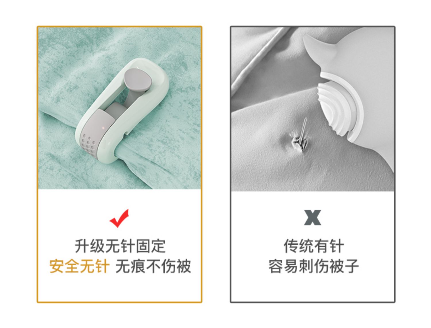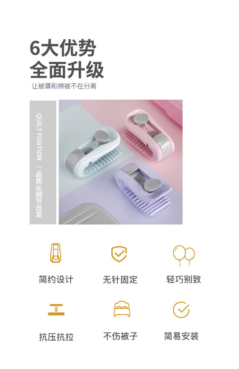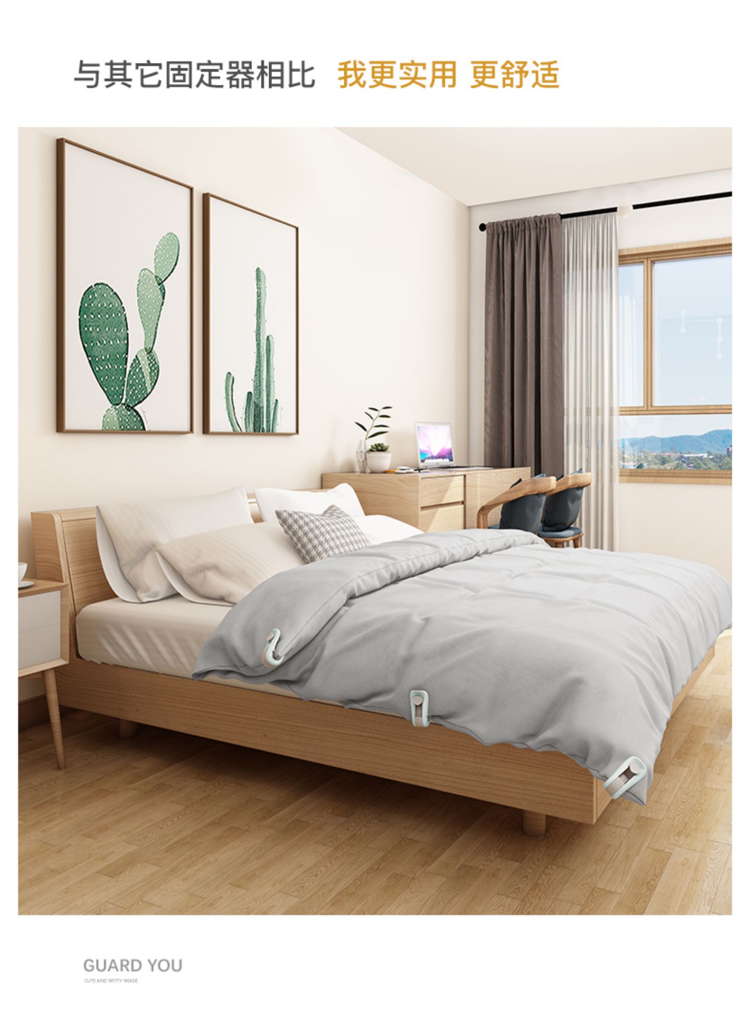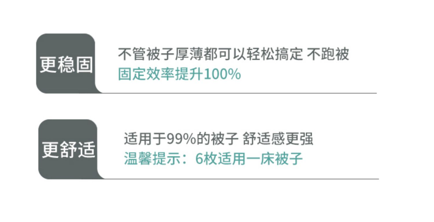 【一盒六只,一只顶两只】全面升级第三代双头被子固定器,一被子不分离,一键解锁,时尚外观,无针固定不伤被哦,适用于99%的被子,拒接冰冷,拒接不安全~~【赠送运费险】