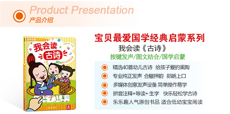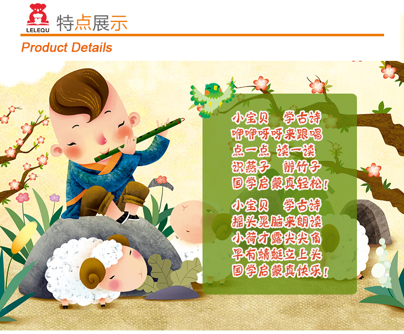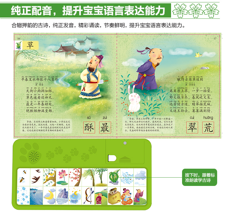 49首经典幼儿古诗,克服宝宝不会认字的障碍,激发宝宝阅读兴趣,培养宝宝语嫣、记忆、认知、品德多种能力,早教启蒙,互动学表演,宝贝手脑互动更聪明