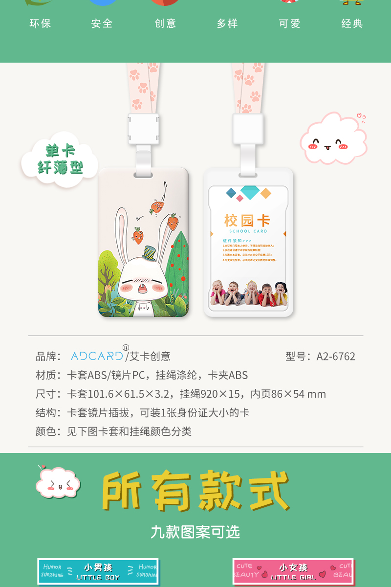 带挂绳胸卡工作牌,定制工牌厂牌工作证,公交门禁胸牌,学生校牌校卡保护套饭卡,透明卡带工卡,卡通外观可爱,配同色卡套