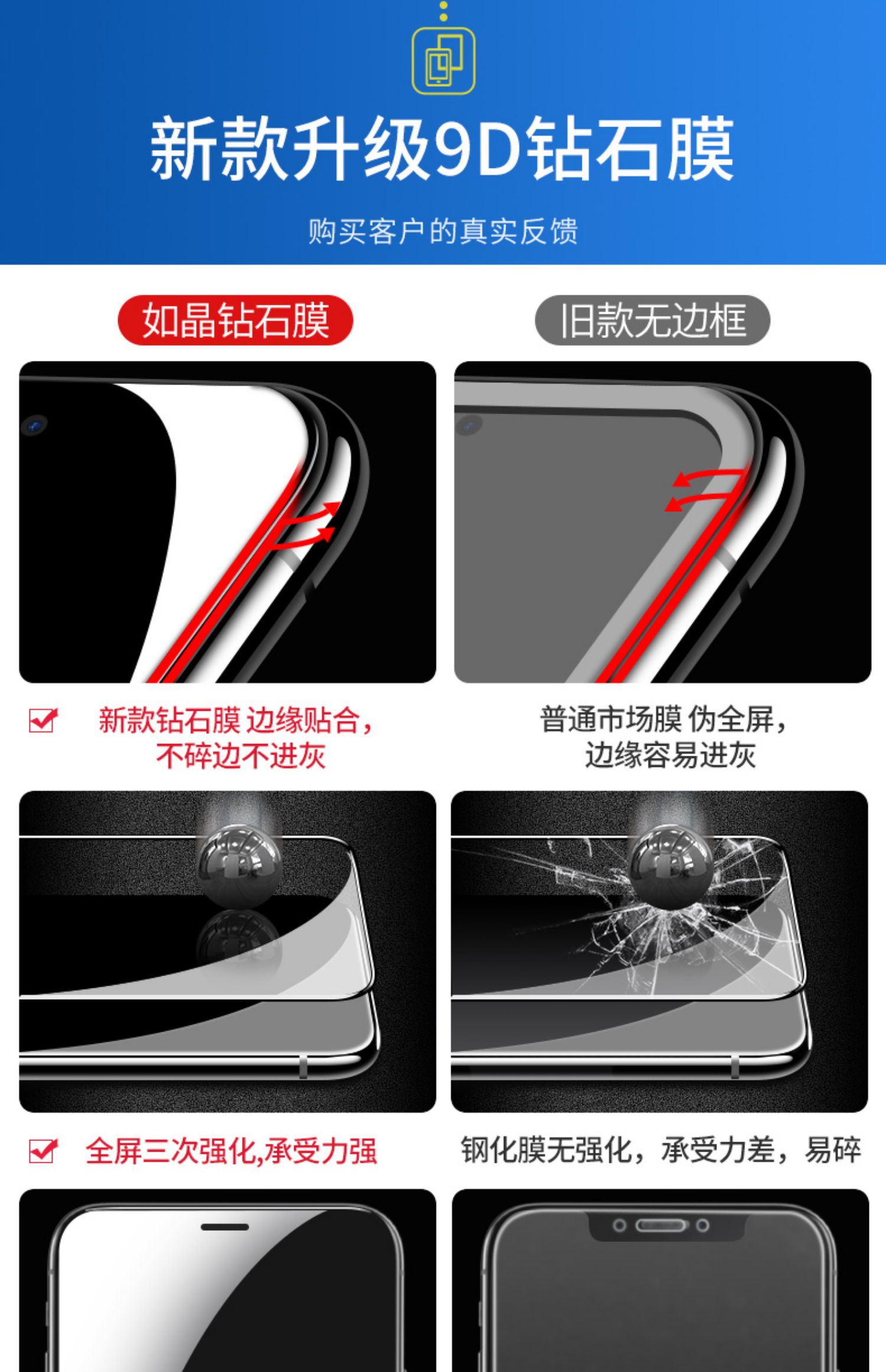 【3张用一年】全新升级纳米钻石防爆版,全屏全包,自动吸附一秒贴合,圆润曲面边裸机手感,30天保障服务,不起白边,保护手机有它就够!