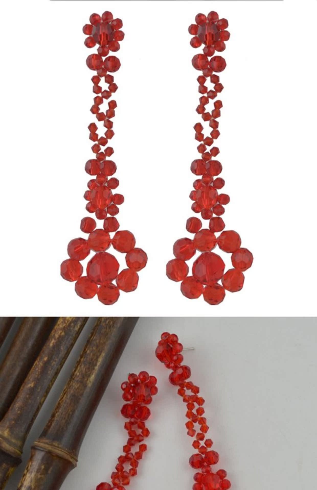 欧美靓饰甜美复古手工钉珠花朵长款镂空流苏夸张水晶耳钉女耳饰品,时尚简约,典雅脱俗,气质女神范!