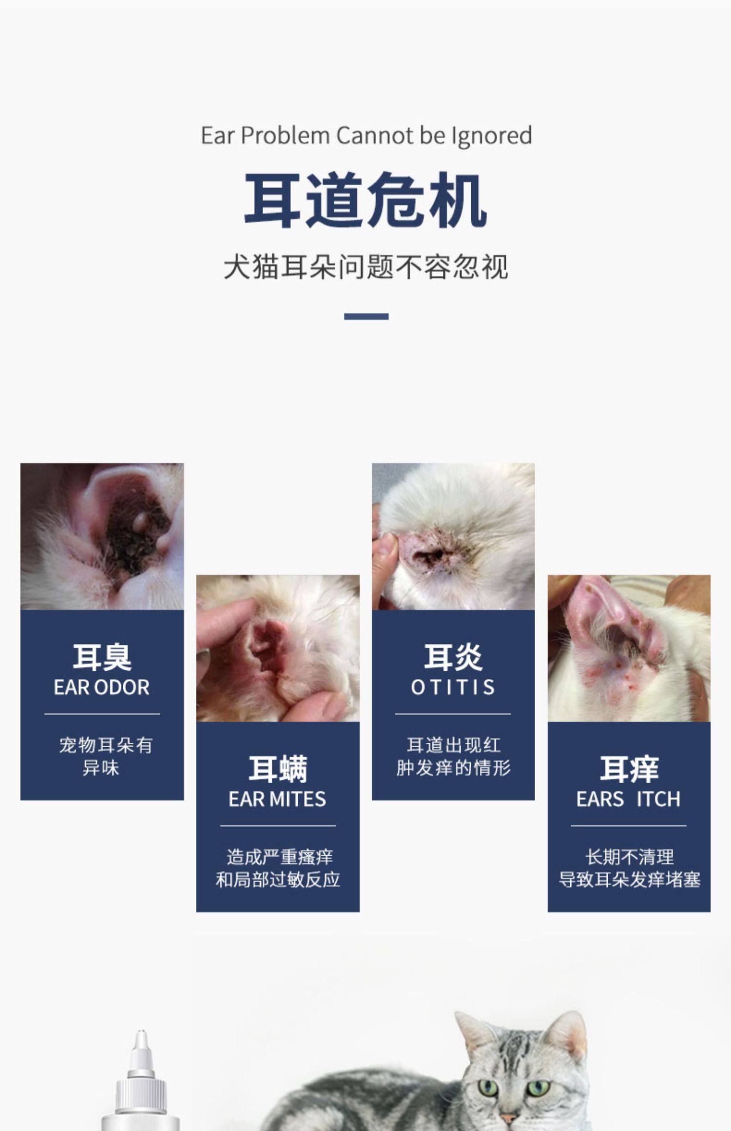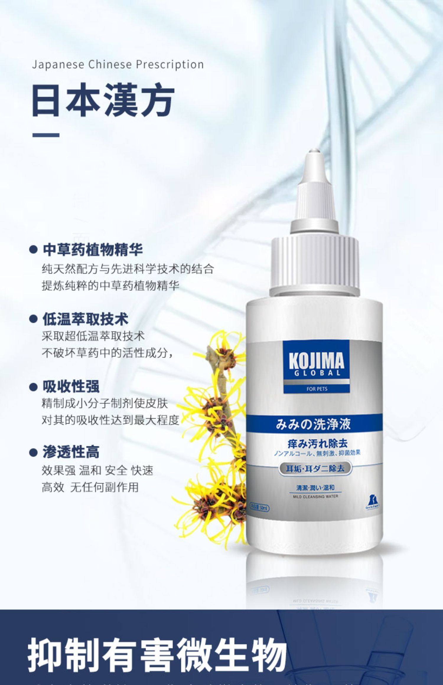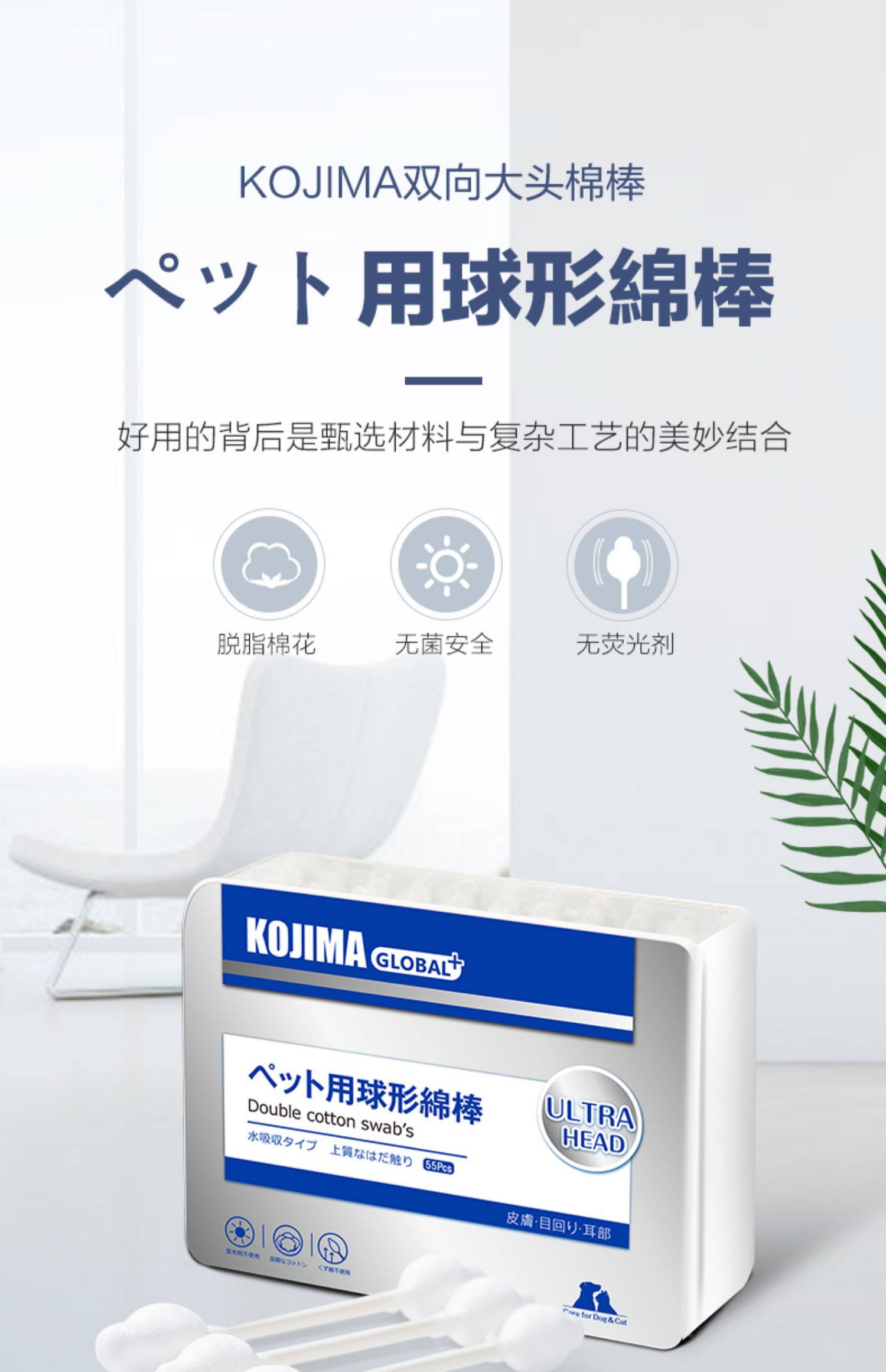【耳部清洁滴耳液+大头棉棒55支】Kojima旗舰店,草本萃取,温和无刺激,脱脂棉棒,无菌安全,专为爱宠设计,有效护理宠物耳部健康