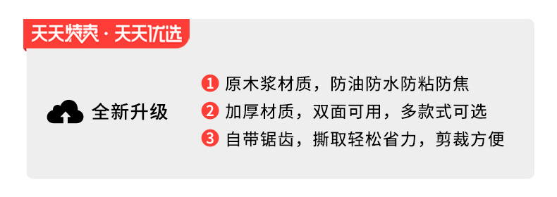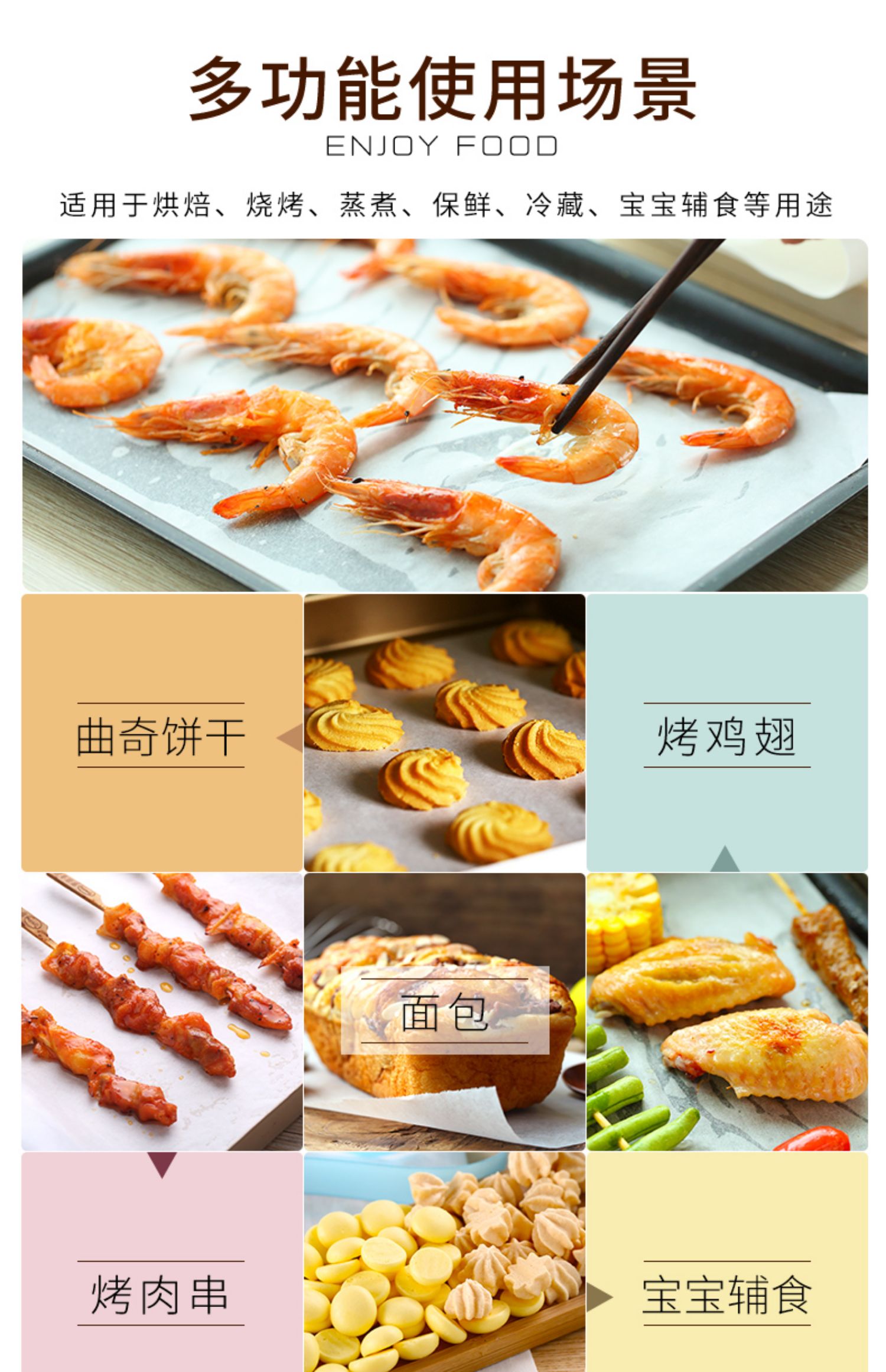 食品接触用材料,防粘,可用来烘焙烤肉,冷藏蒸煮,健康环保,安全硅油,双面可用QS认证。