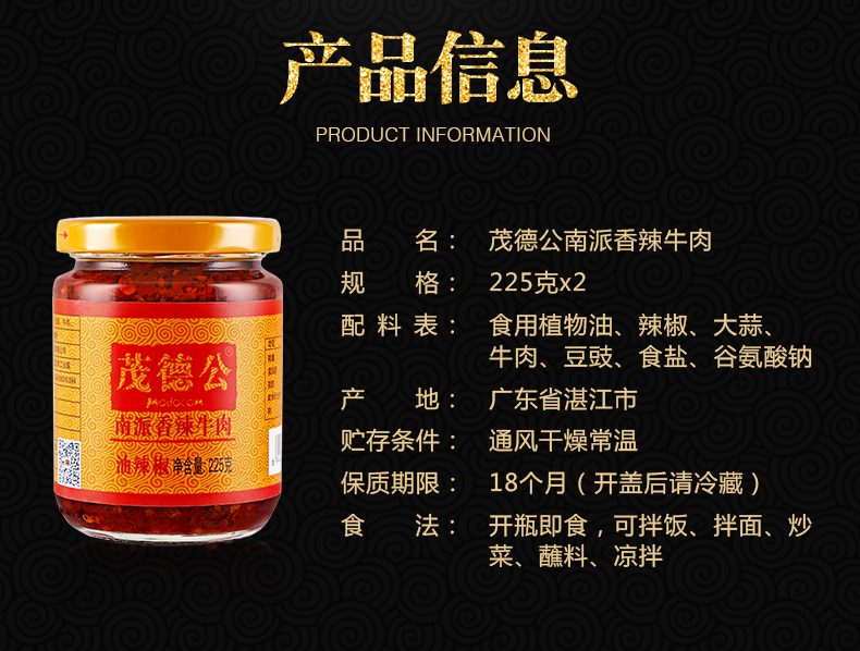【茂德公】农家自制,纯天然,不添加防腐剂,块块牛肉看得见,香辣十足,拌饭拌面多少都能吃得完。【赠运费险】