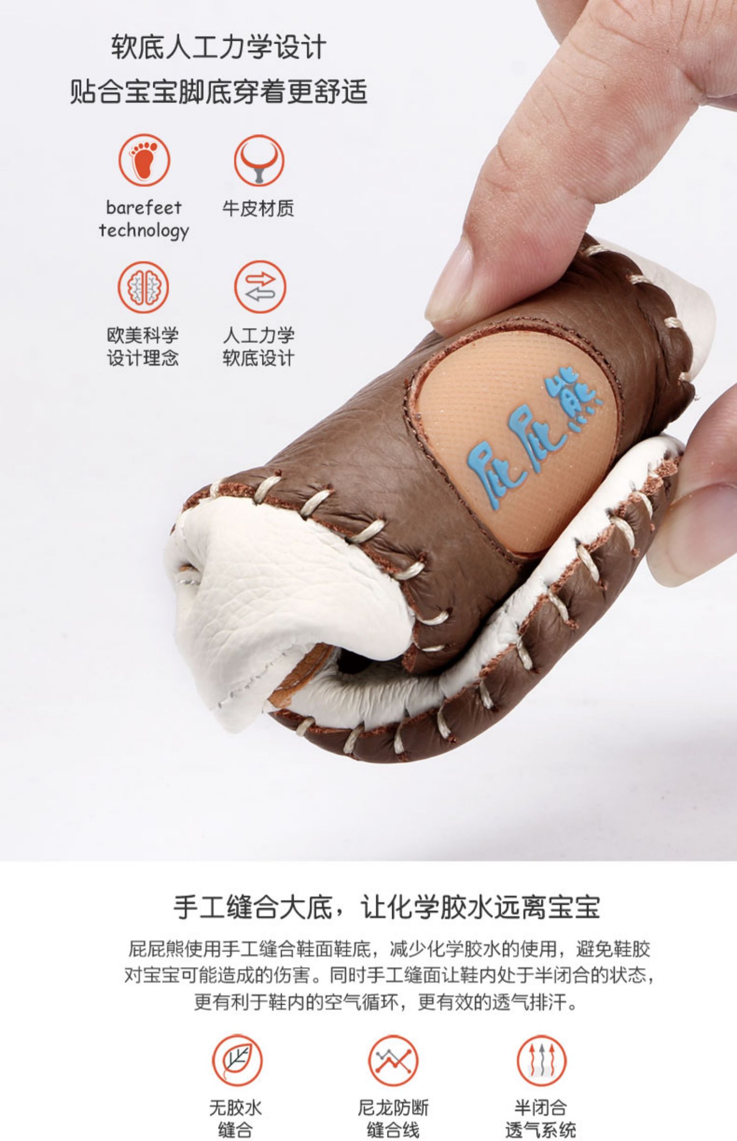 【屁屁熊】婴儿春季学步鞋,纯牛皮透气性好,穿着舒适,柔软防滑不怕摔。宝宝一年四季学步走路之选。【赠运费险】
