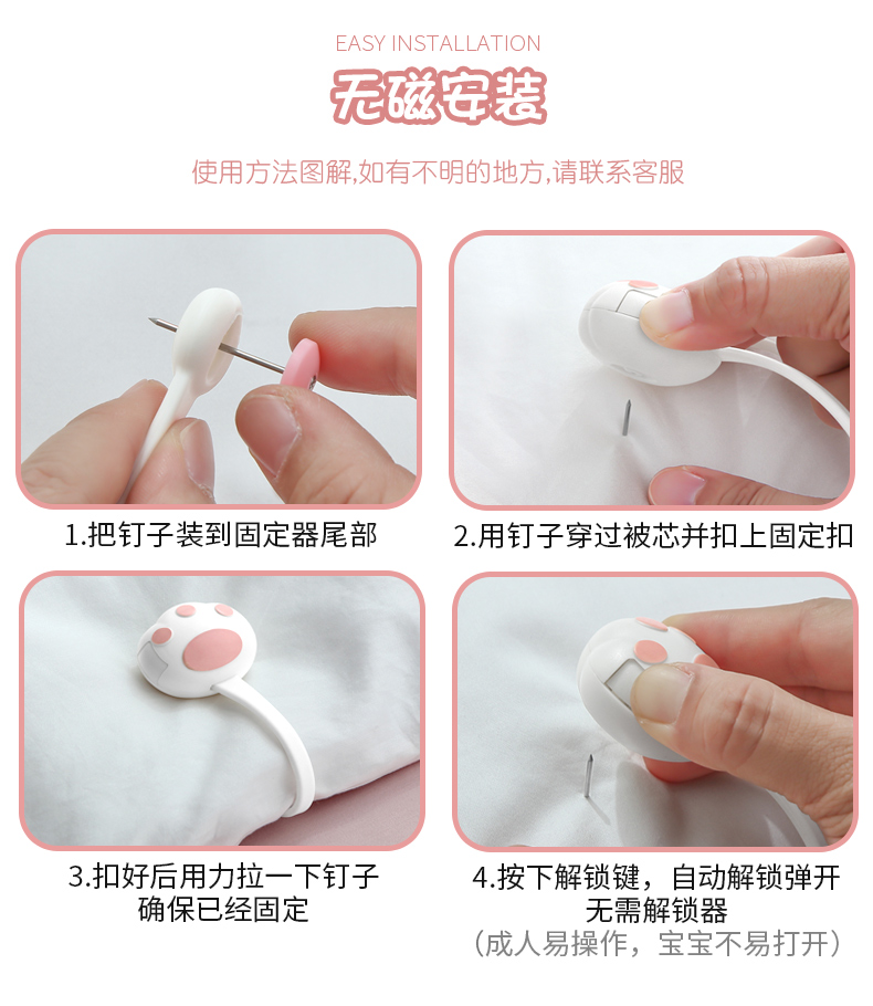 【新品!无需解锁器!按压解锁!,4.9单品超高评分】传统固定器你用着放心吗?安全无味,圆弧设计,光滑无毛刺~使用方便快捷,无需解扣器!限时18件套只需5.9,改善床单被套乱糟糟,让打理更加简单!