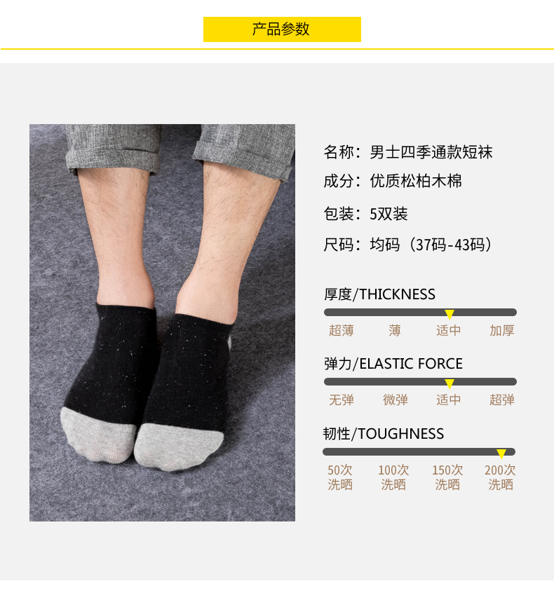 男士短袜船袜浅口低帮棉袜5双