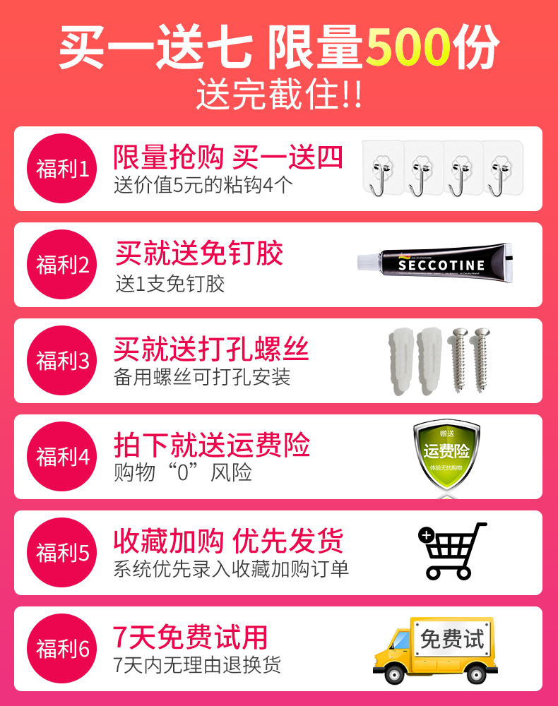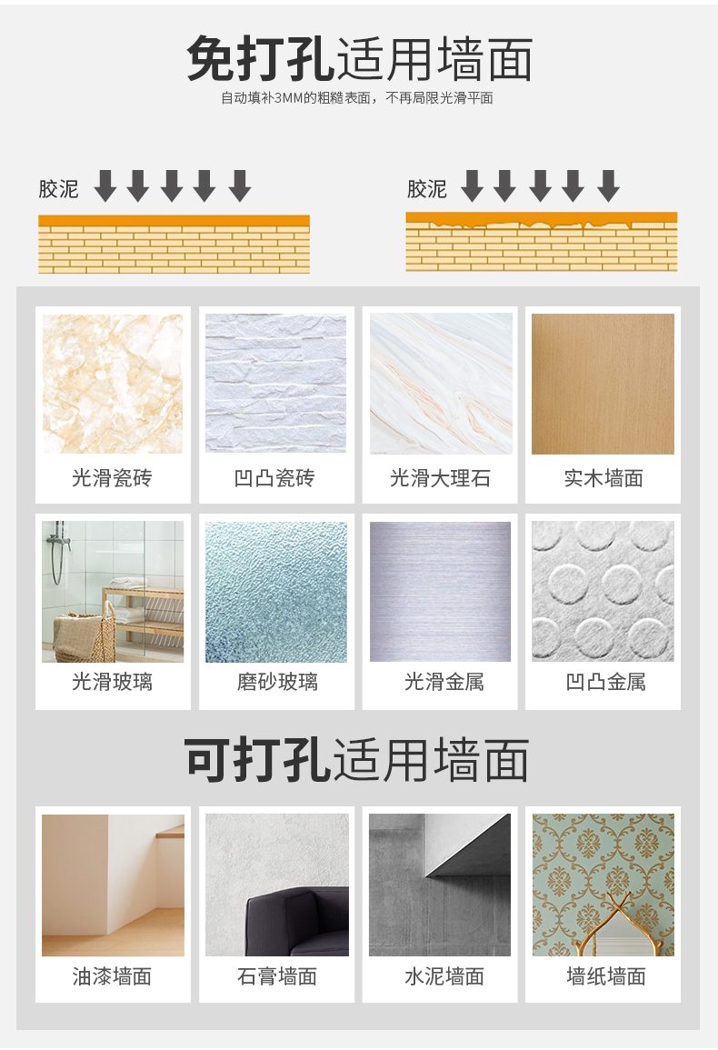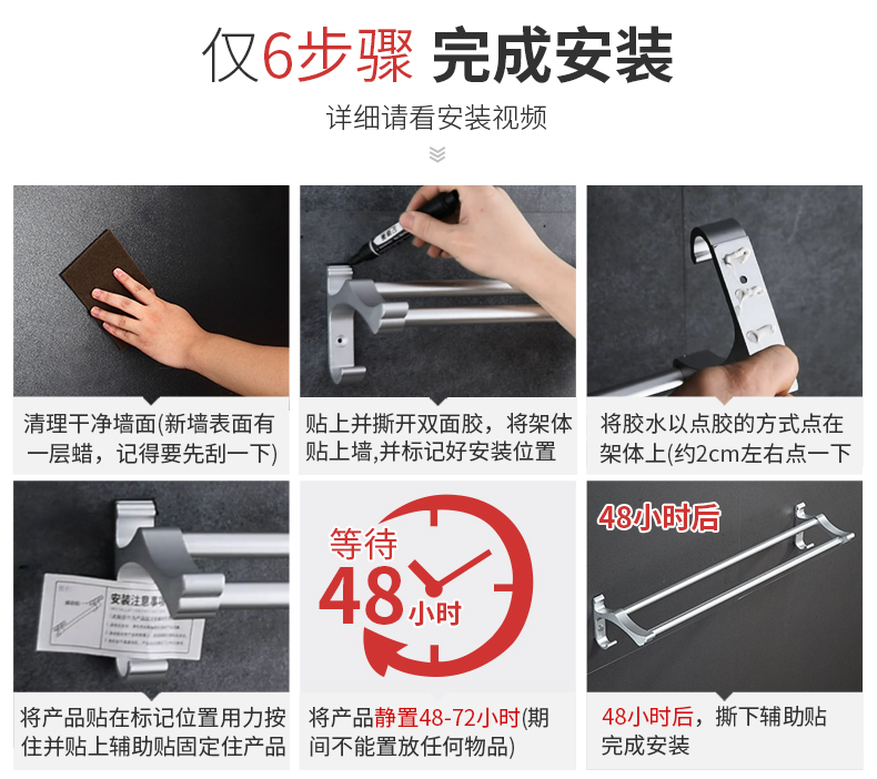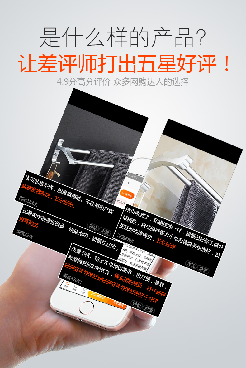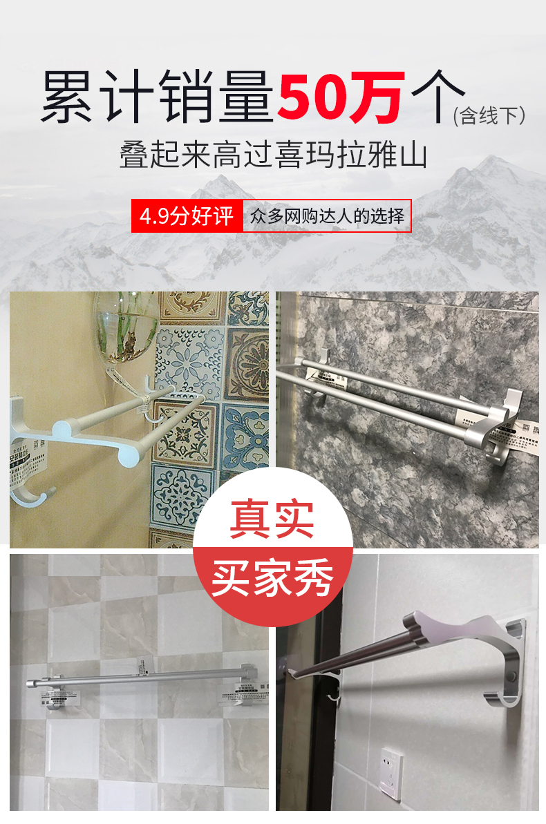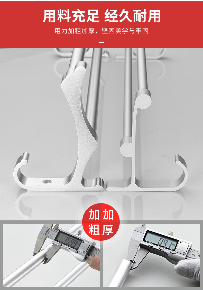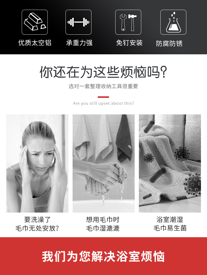 优质太空铝,加粗加厚,承重力强,自主研发涂胶技术,免打孔不生锈不掉落,十年内自然掉落包赔,六层抗氧化,日久如新刮不花,外观专利,好看好用!居家必备神器!【赠运费险】