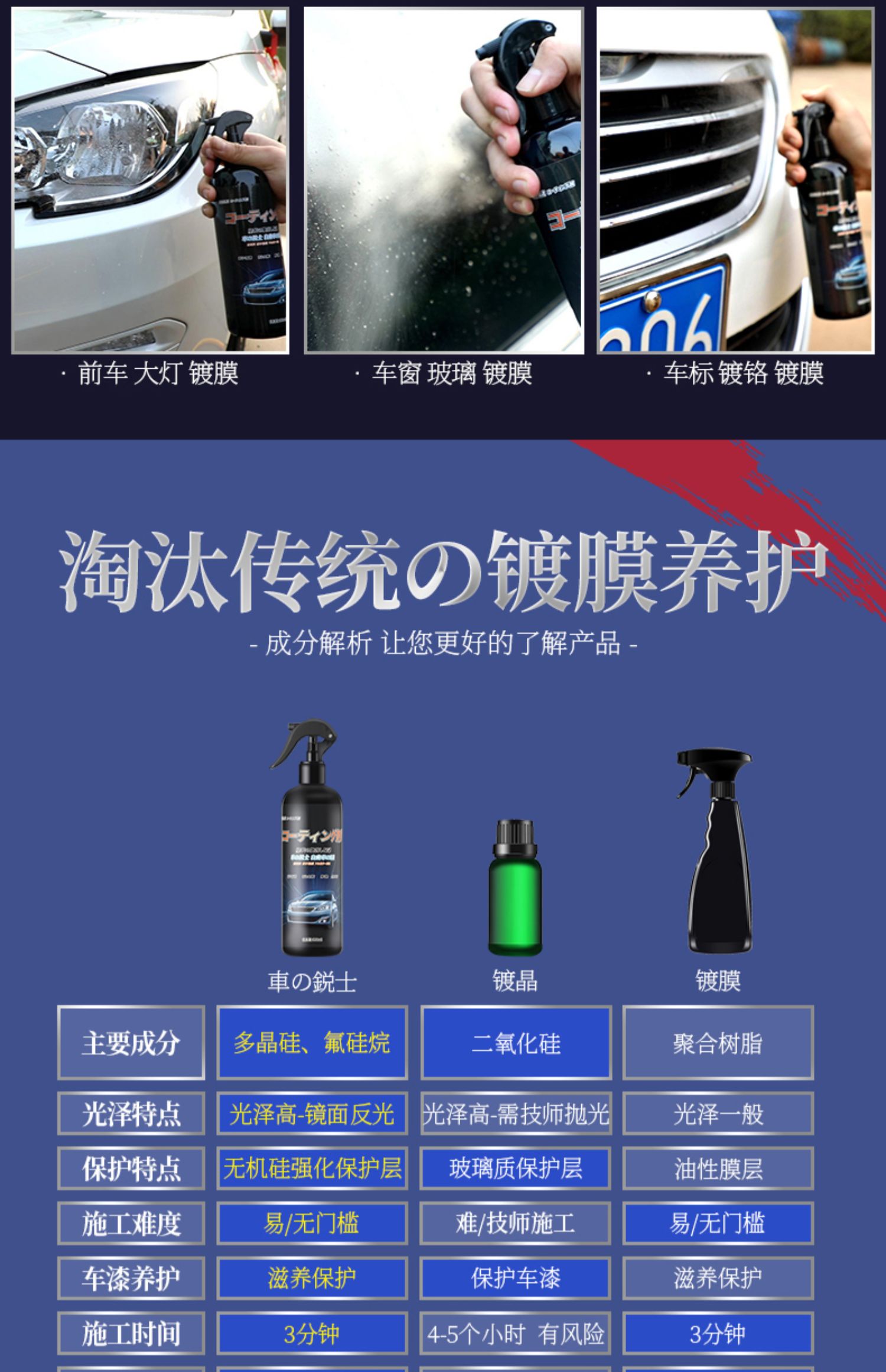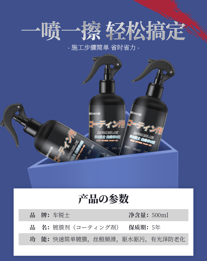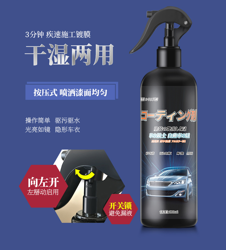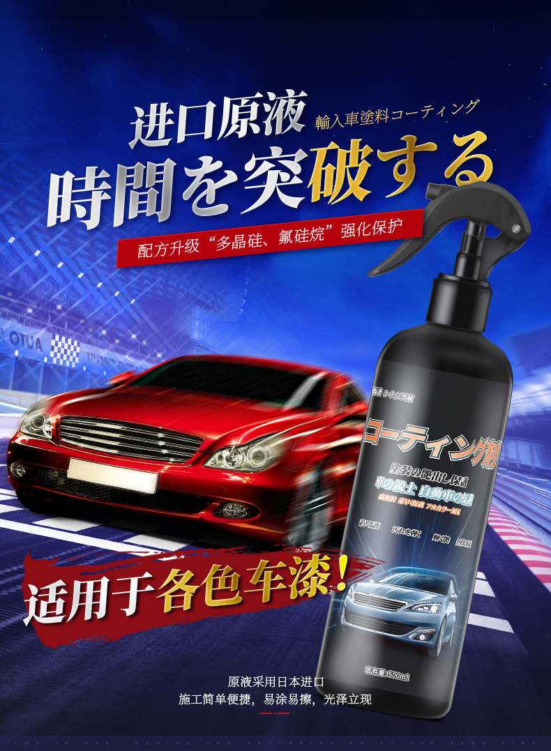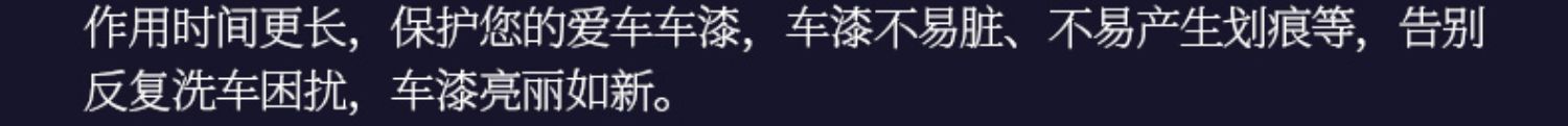 日本进口,升级配方,干湿两用,持久防护。360°保护车漆,适用于爱车各个部位!!