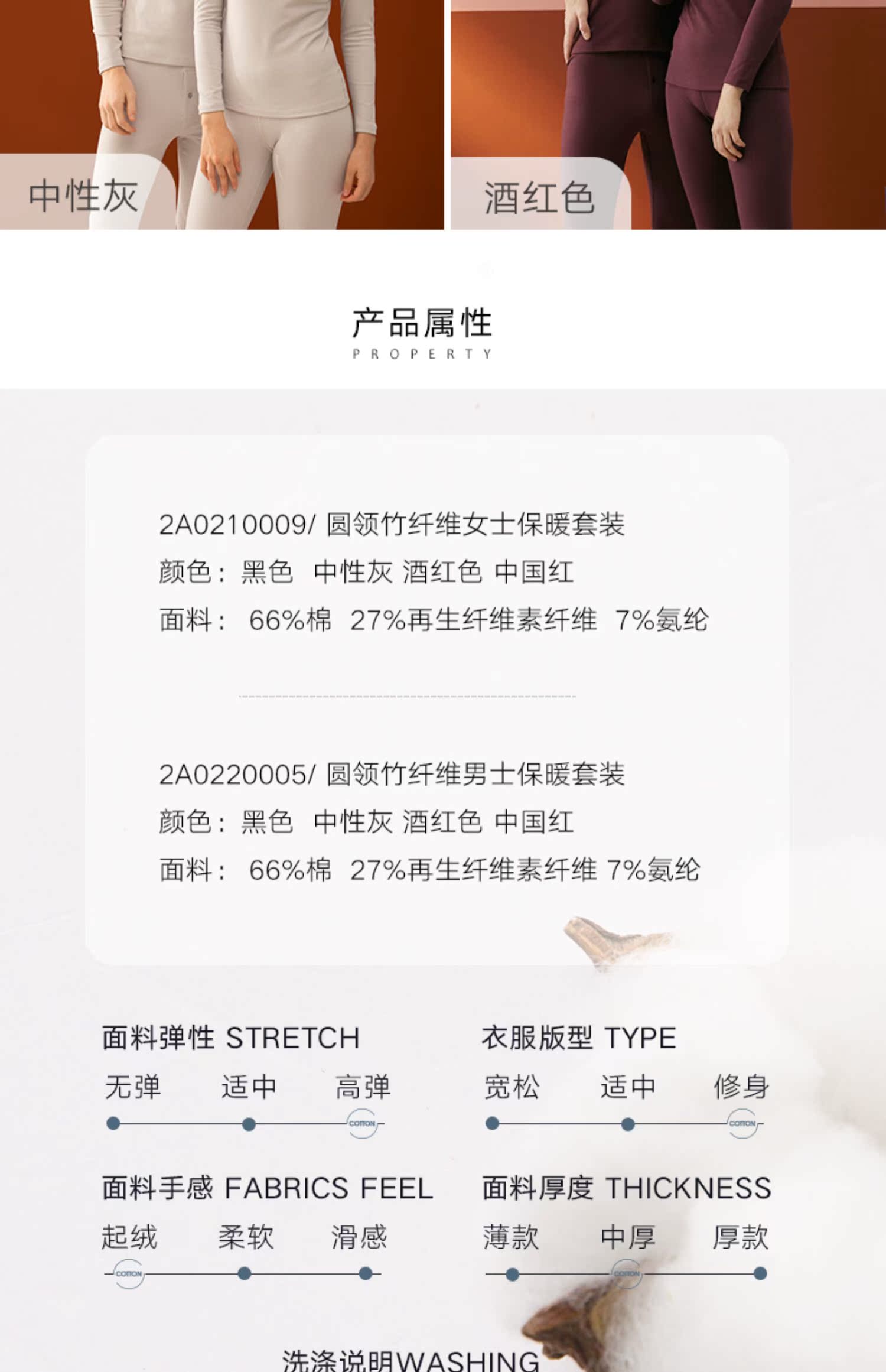 【拍3件免1件】曼妮芬棉质生活,圆领竹纤维,女士保暖套装,贴心关节加倍保暖,线下专柜同款,有弹性更舒适,3D立体裁剪,一套高颜值的保暖内衣!