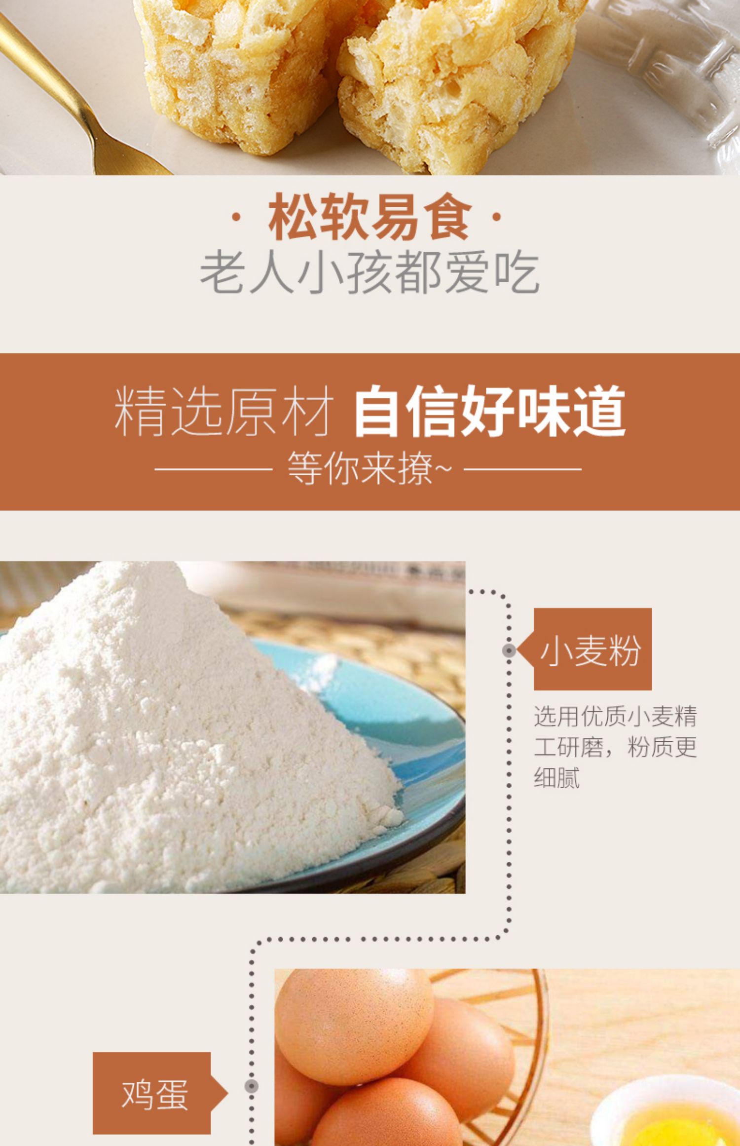 全蛋加入不加一滴水,日期新鲜,每一个都是独立包装,酥软香浓,美味又健康,甜而不腻,大人小孩都爱吃!早餐下午茶都是好的选择~【赠运费险】