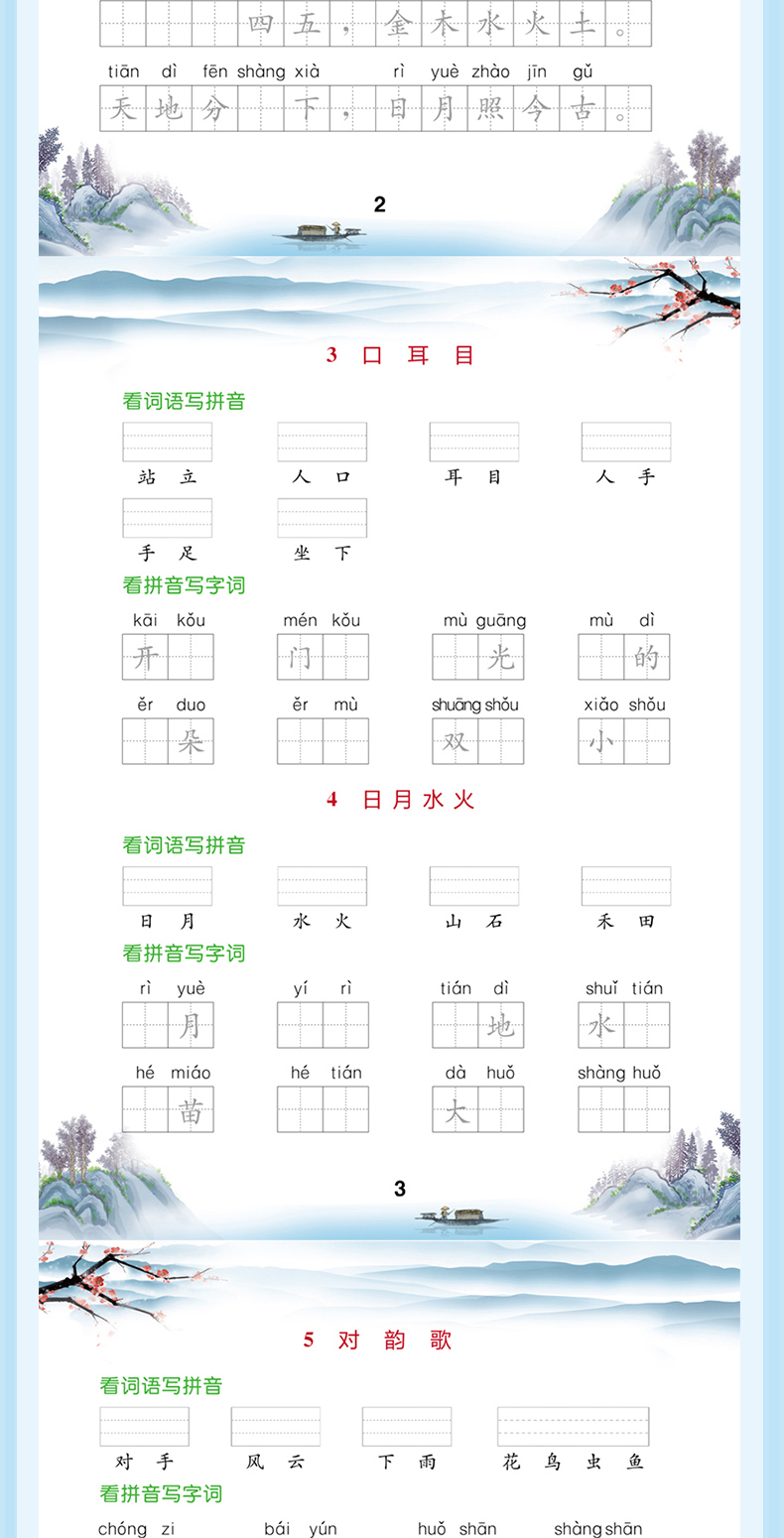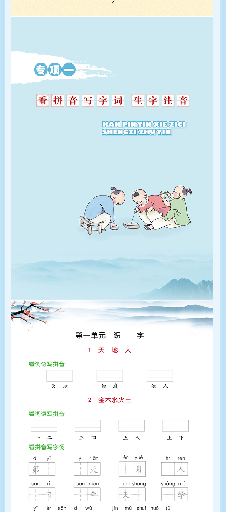 【人教版】一年级上册彩绘版,看拼音写词语专项训练,生字注音,课堂同步,一课一练,课后练习,巩固知识,是小学生练字识字必备书籍~