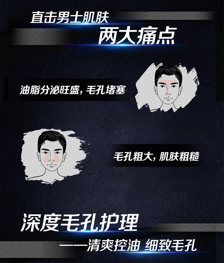 男士洗面奶,早用控油抗痘,晚用细致毛孔,补水保湿,去除黑头,早晚搭配,型男必备。