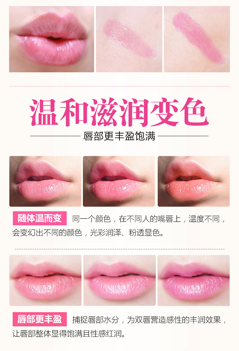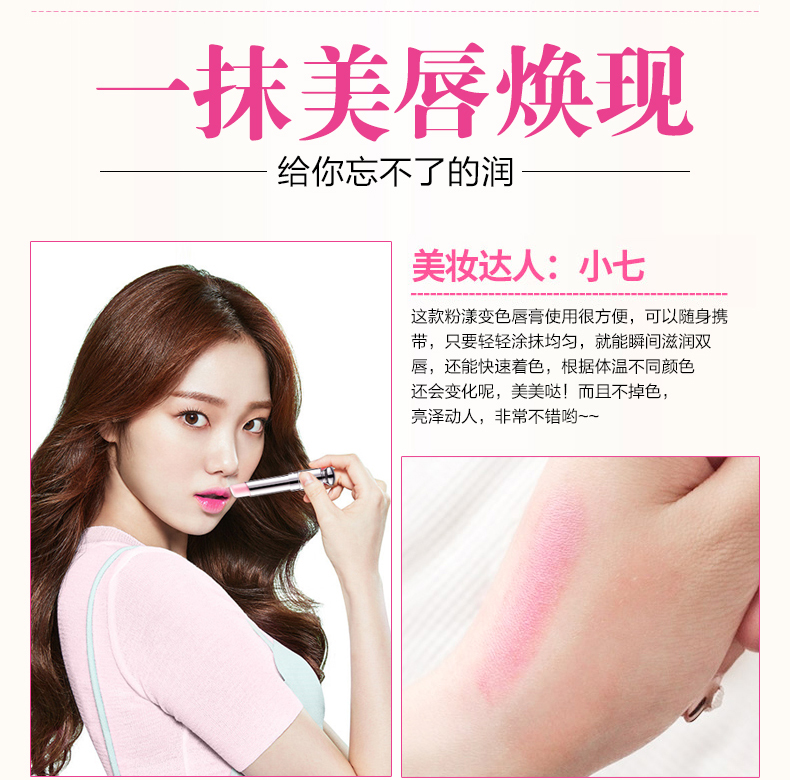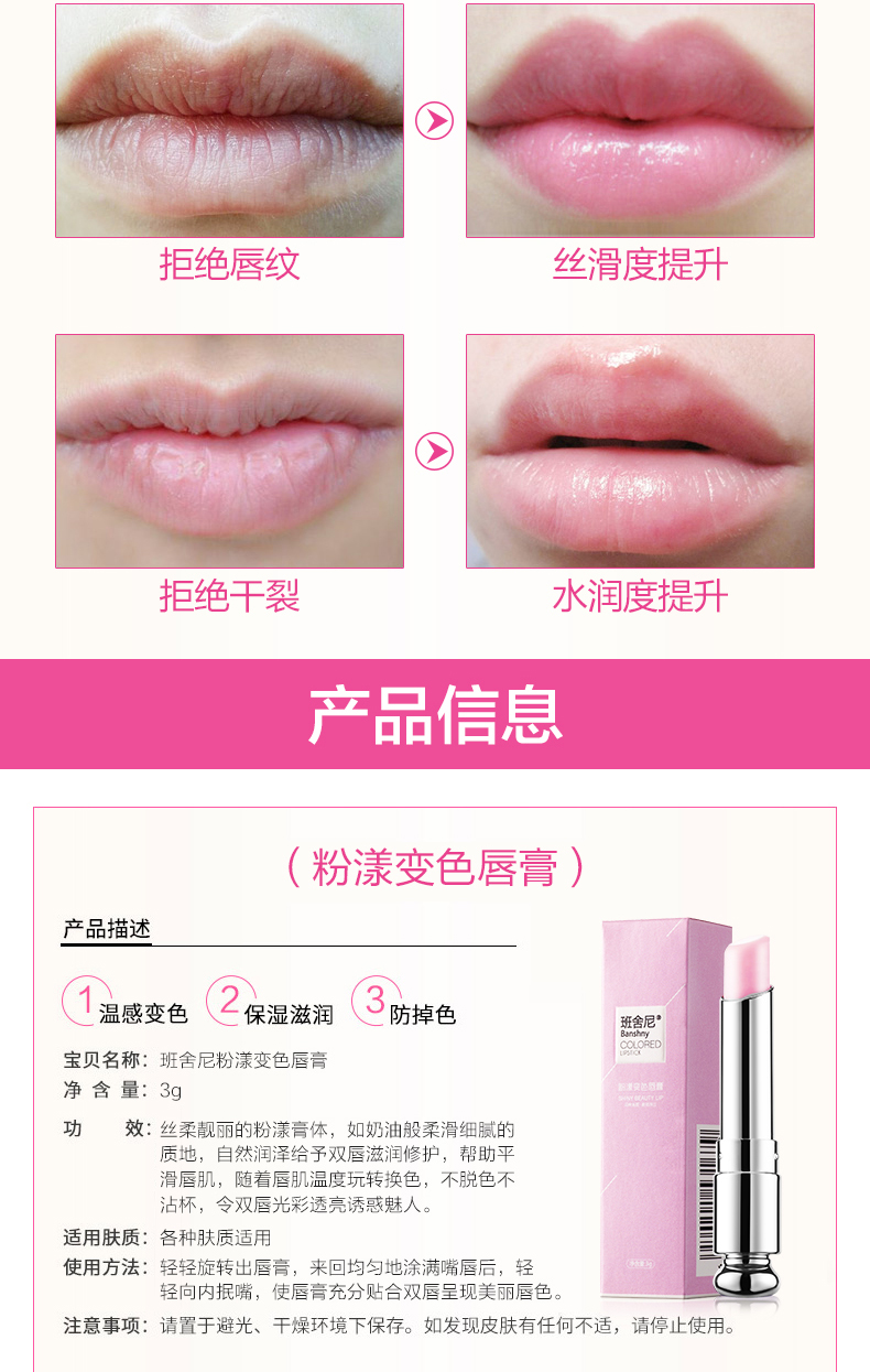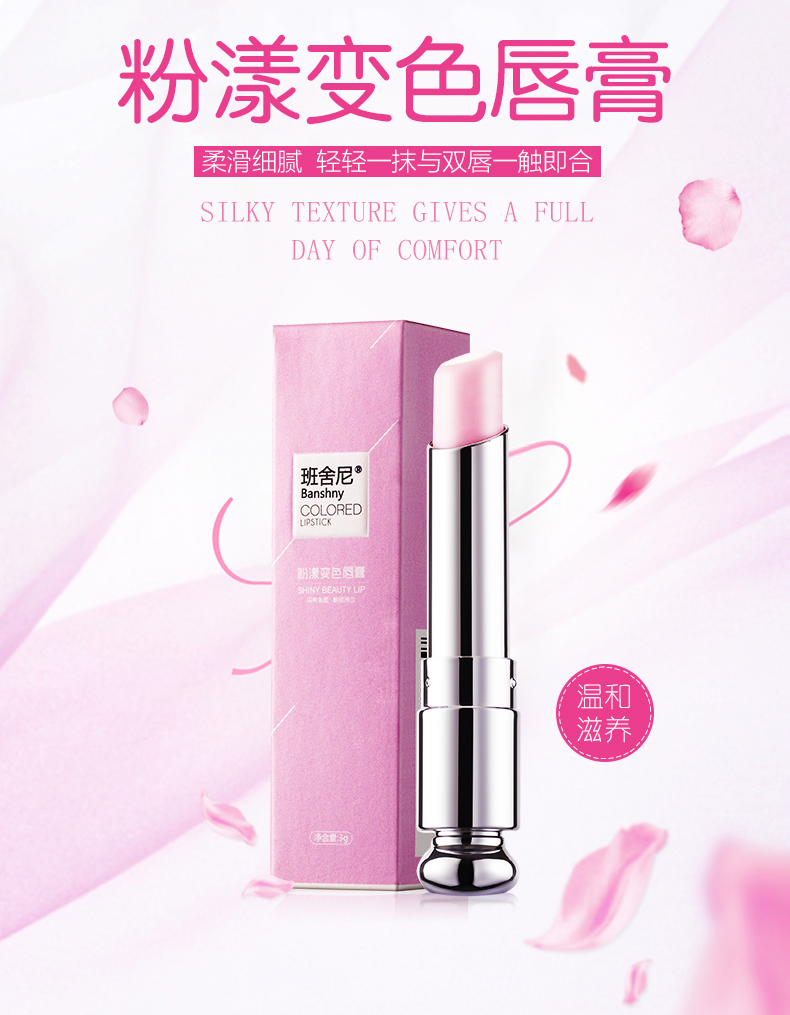 班舍尼保湿滋润变色唇膏,持久自然水润唇色,改善干燥唇肌,解决唇部起皮,防干裂小样唇彩,粉漾变色唇膏,随体温而变色,轻轻一抹与双唇一触即合!深深爱上的唇膏!