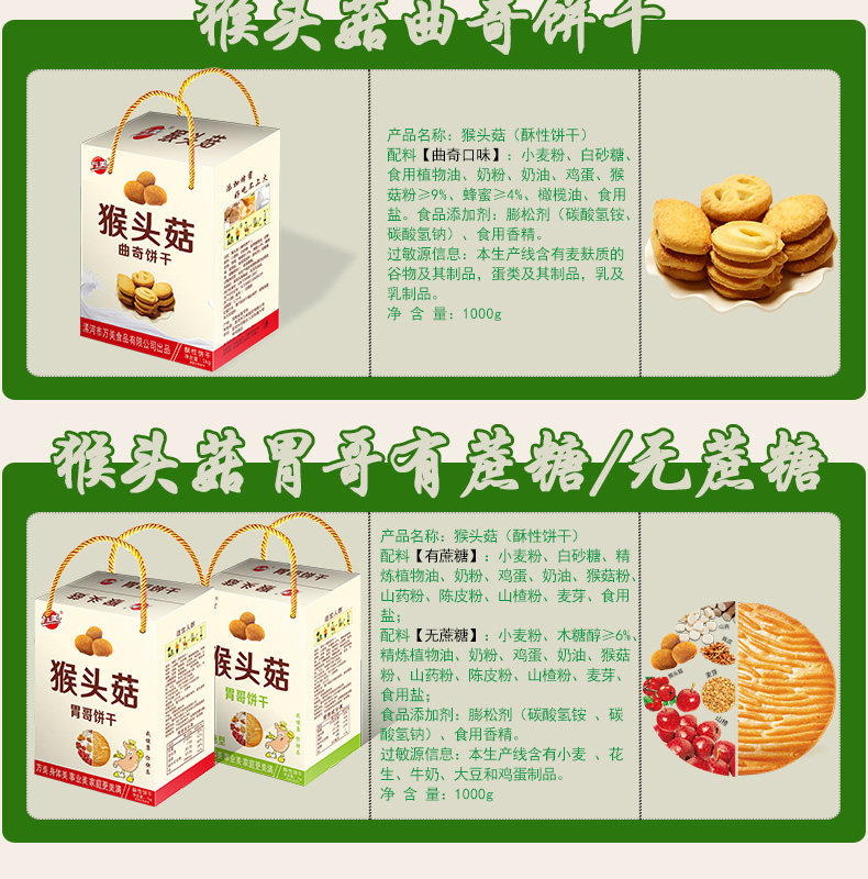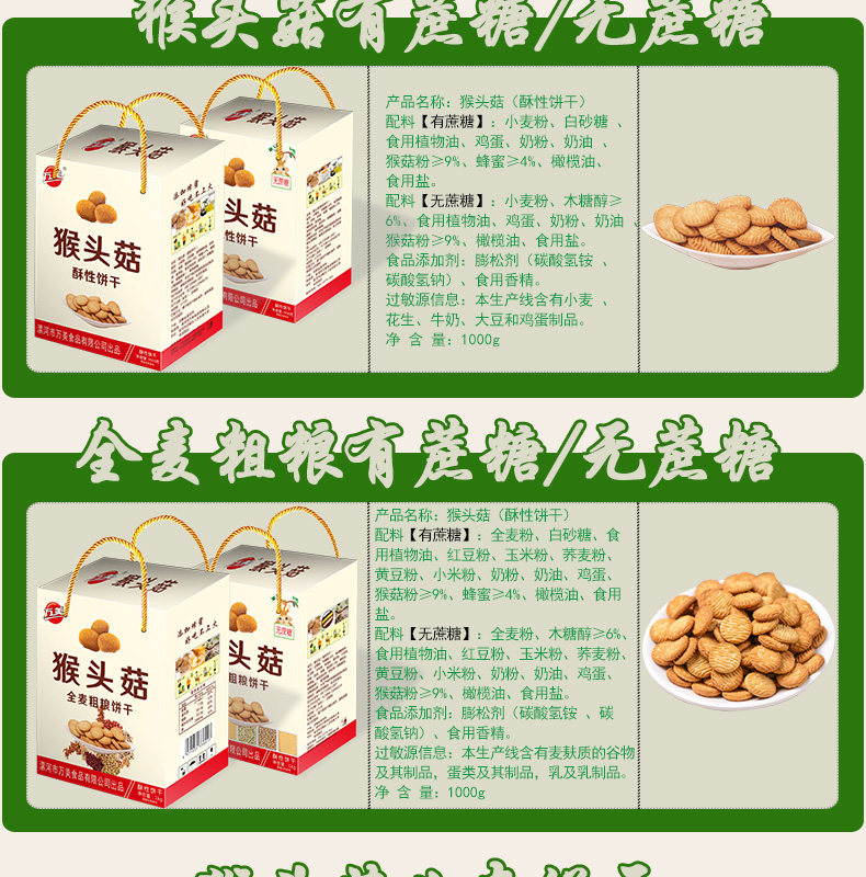 超值2斤装,五谷精华,营养美味,无糖/蔗糖可选,真正含猴菇的饼干,独立小包装,约25-30小包,卫生方便!奶香四溢,解馋饱腹,特别养胃哦~多种口味任选~【赠运费险】