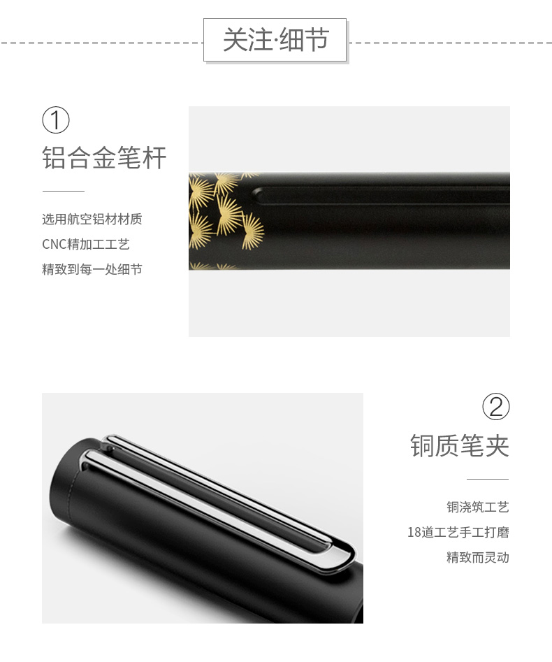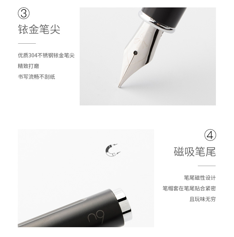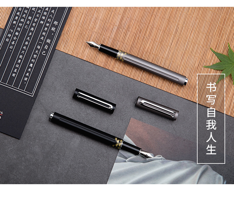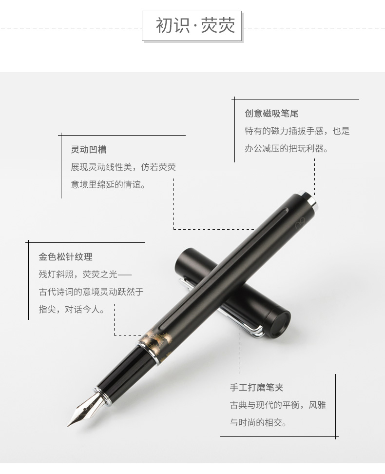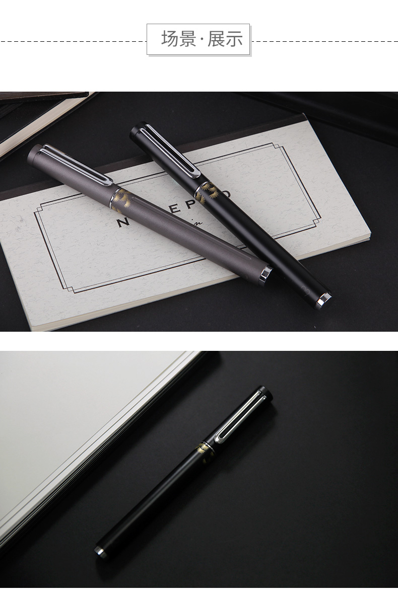 商务风高颜值钢笔,高质量铱金笔尖,铝质凹槽笔身,磁吸笔尾,松针纹理,书写顺畅,日常书写,办公签字都很好用!