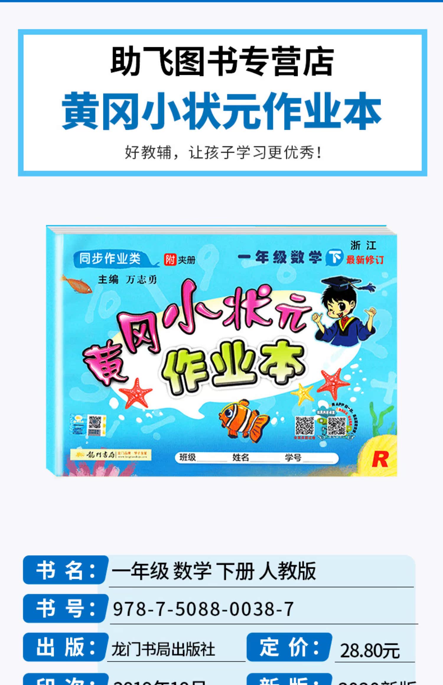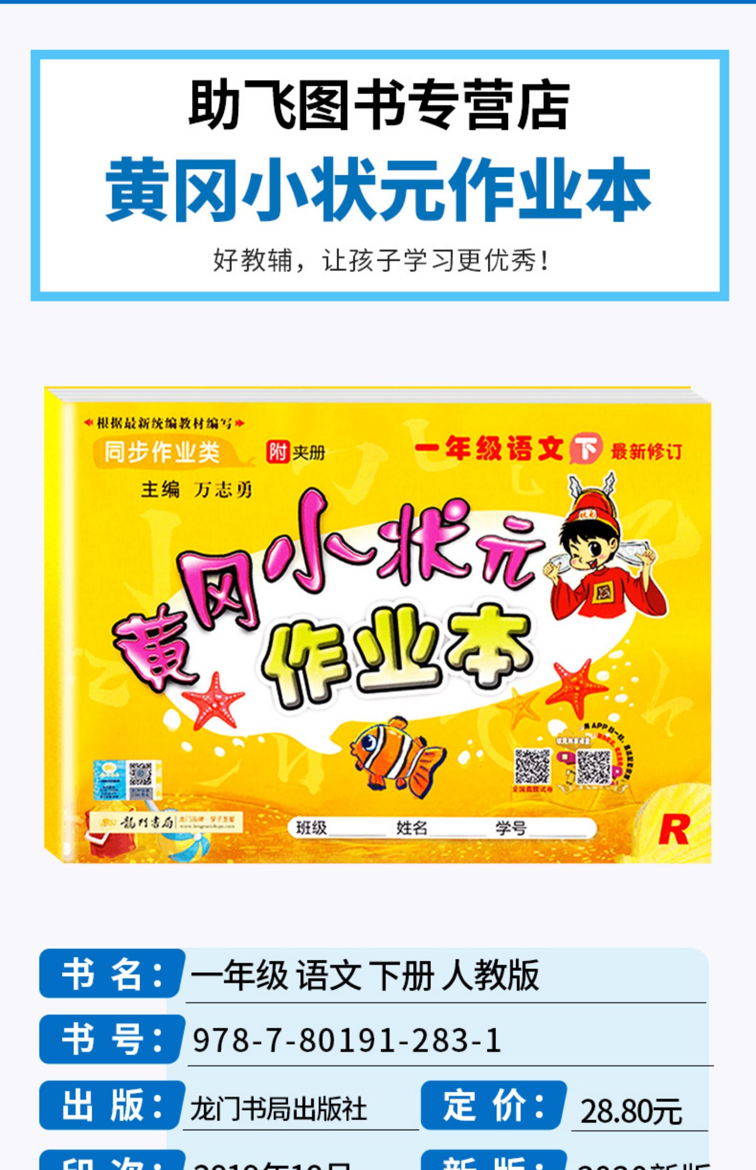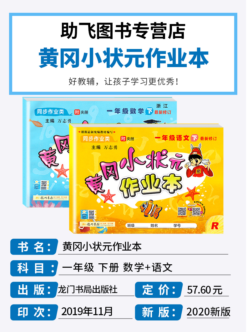 【买一赠二,实发四本】黄冈小状元作业本一年级下册数学+语文下册,同步教材课本,印刷清晰,题型丰富有趣,知识点归纳、帮助孩子复习功课,让您的孩子赢在起跑线上。