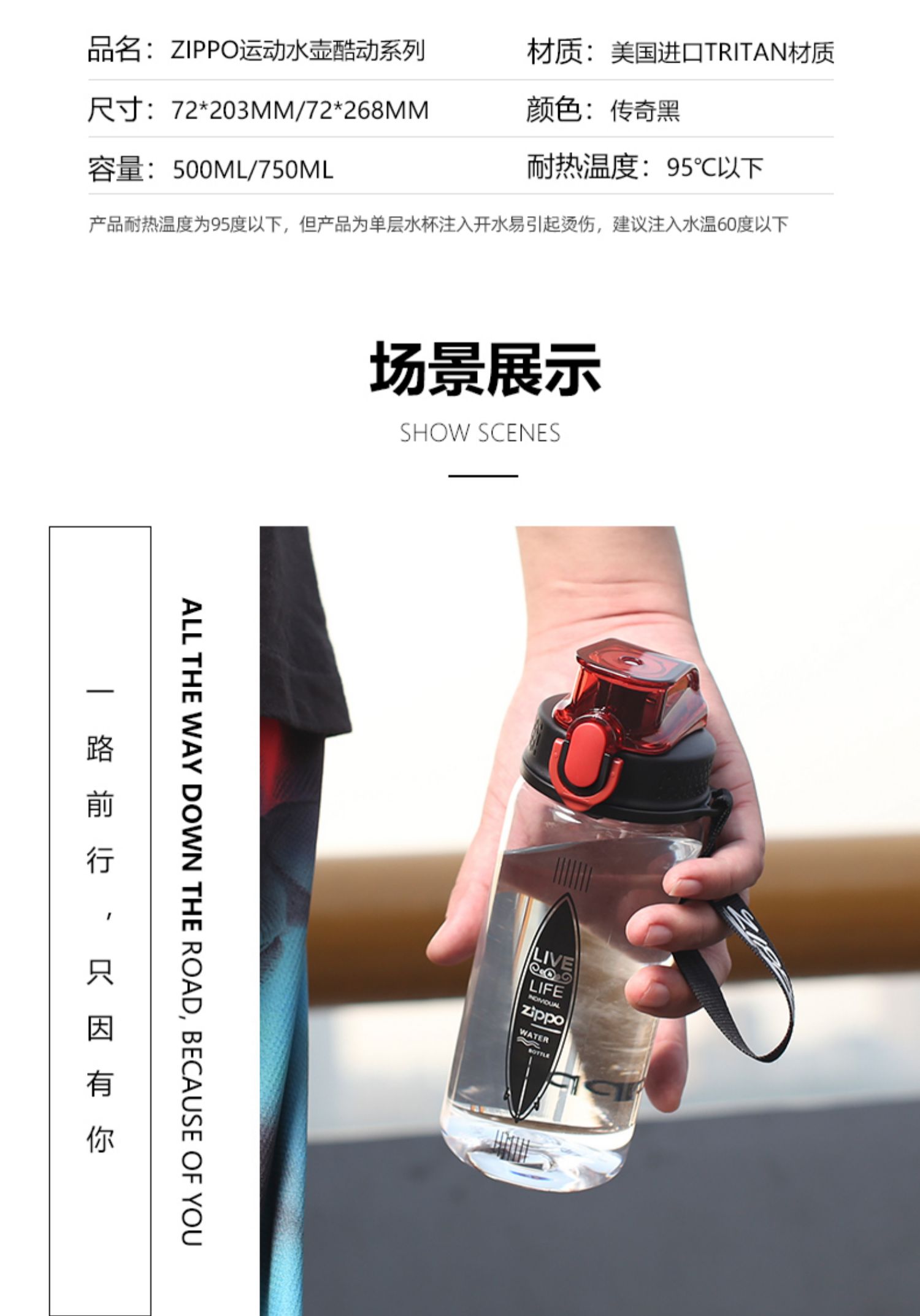 美国进口zippo运动水杯,安全无味,大容量,健康材质放心使用,多种颜色可选,耐骤热温差,带拎环,含防烫圈,运动爱好者必备!