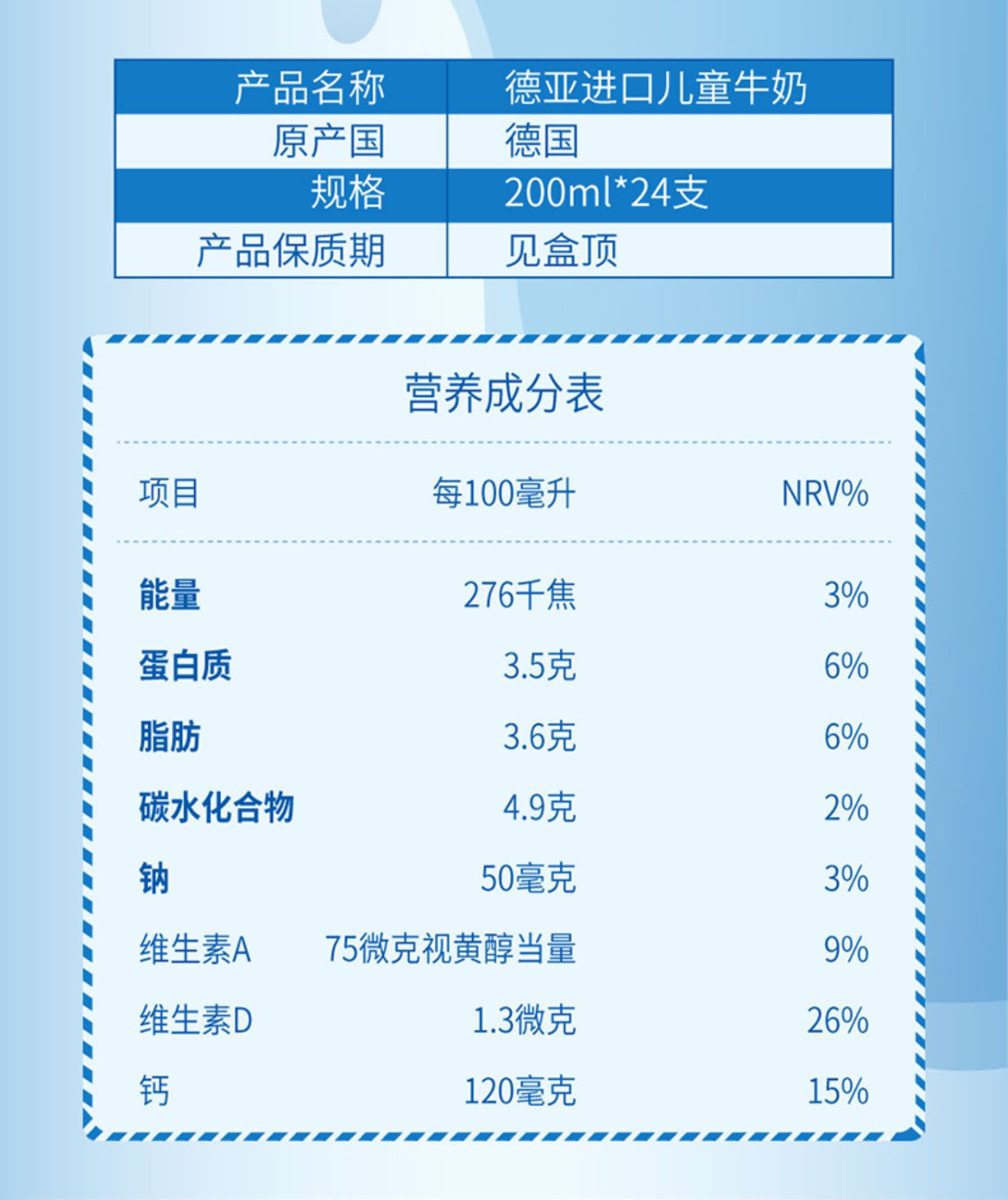 德国原装进口,德亚儿童成长高钙早餐奶,无添加防腐剂,VA+VD双V配方,孩子爱喝,妈妈放心~快来抢购吧~