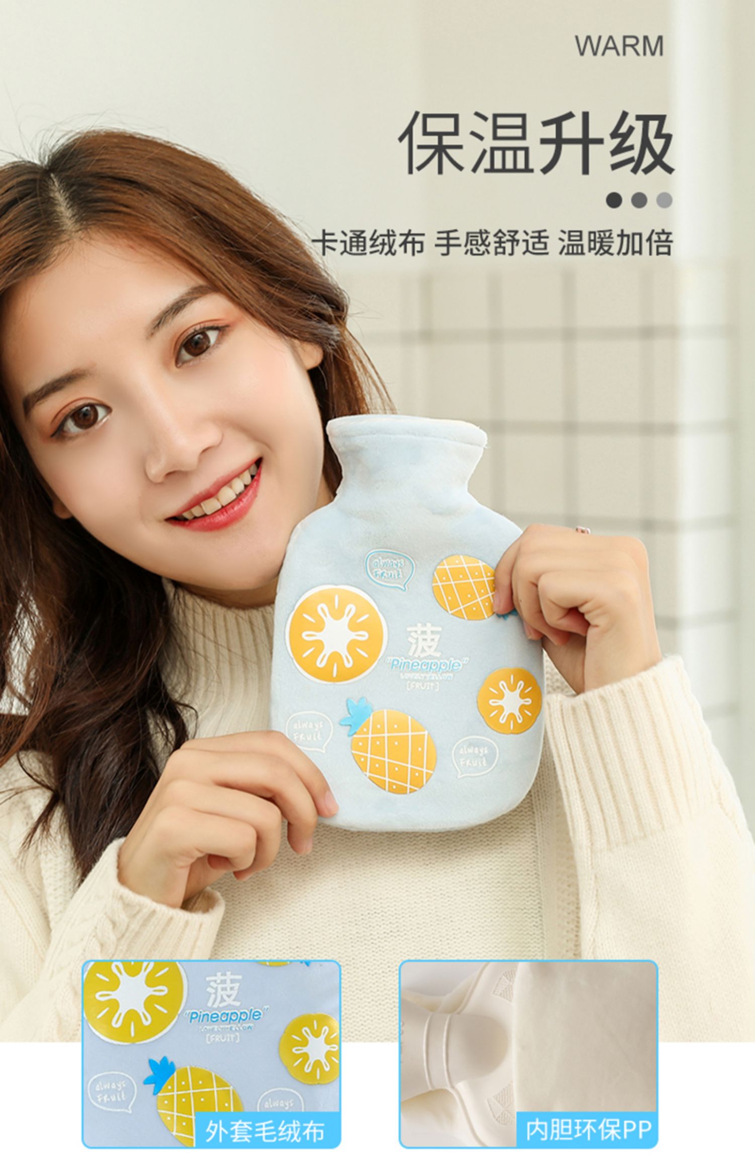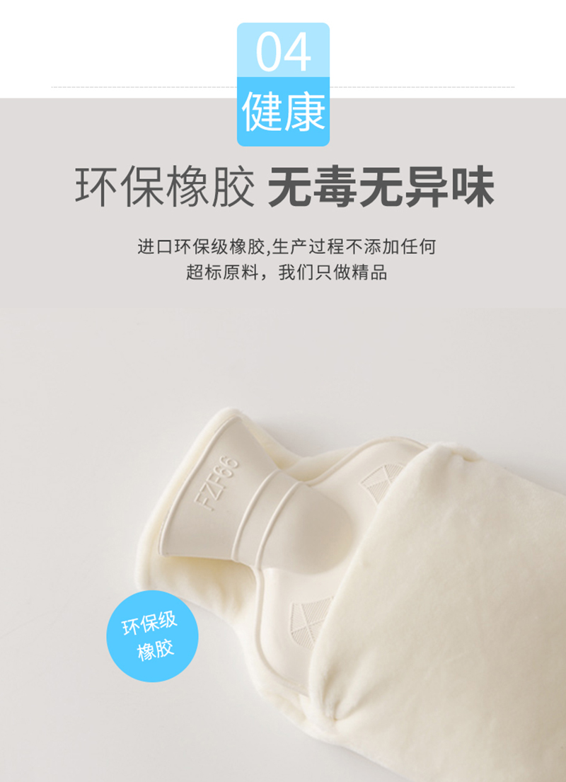 经典橡胶热水袋,将安全进行到底!加厚防烫,防爆防漏,柔软舒适,外包毛绒套,热量持久,均匀缓慢散热,抱在怀里暖暖的