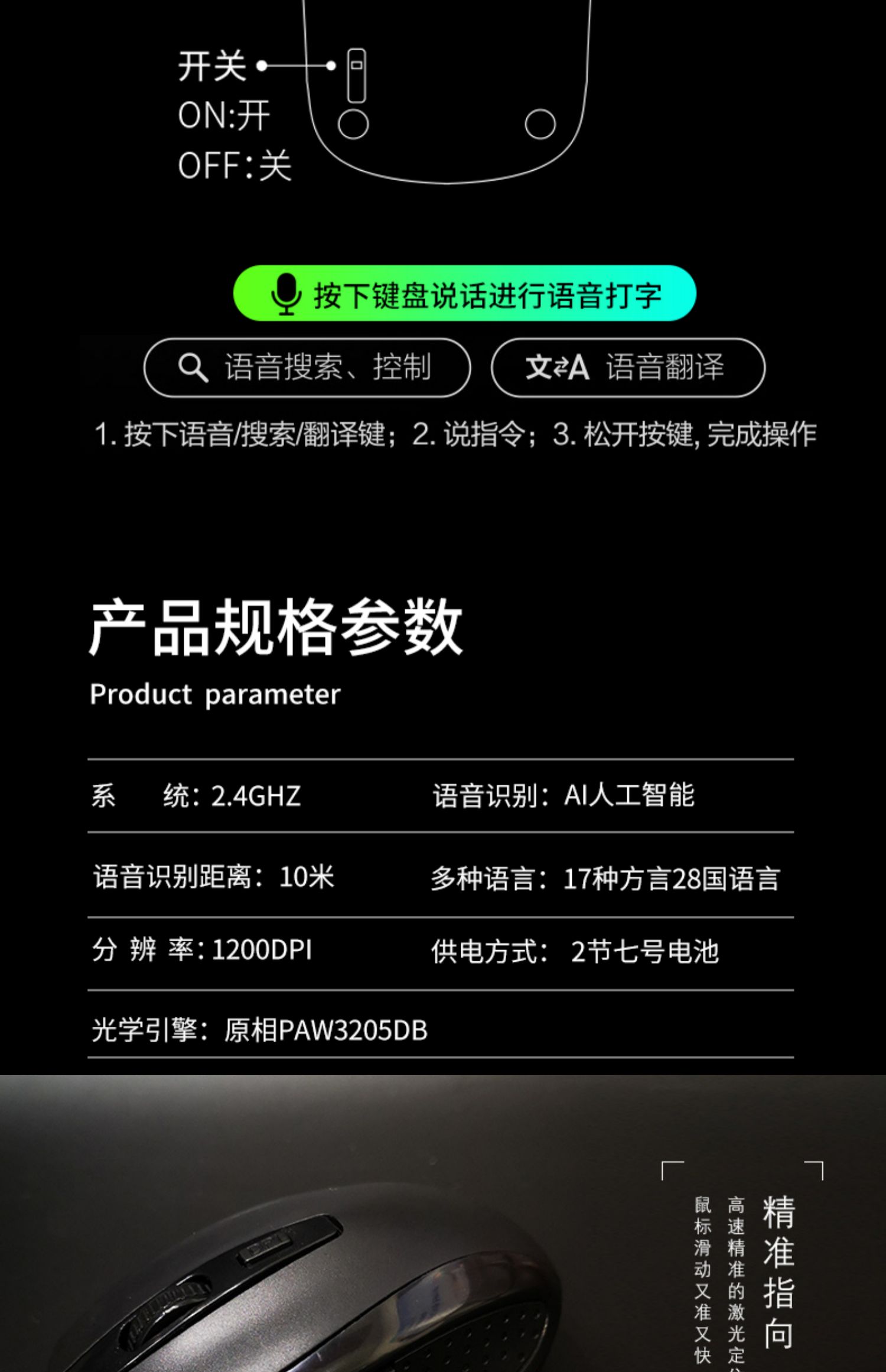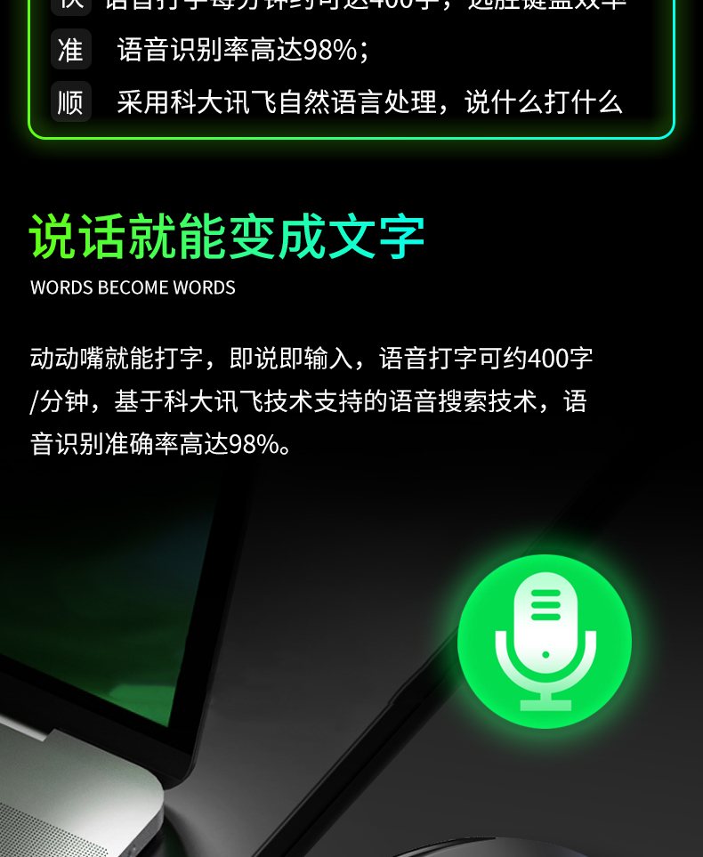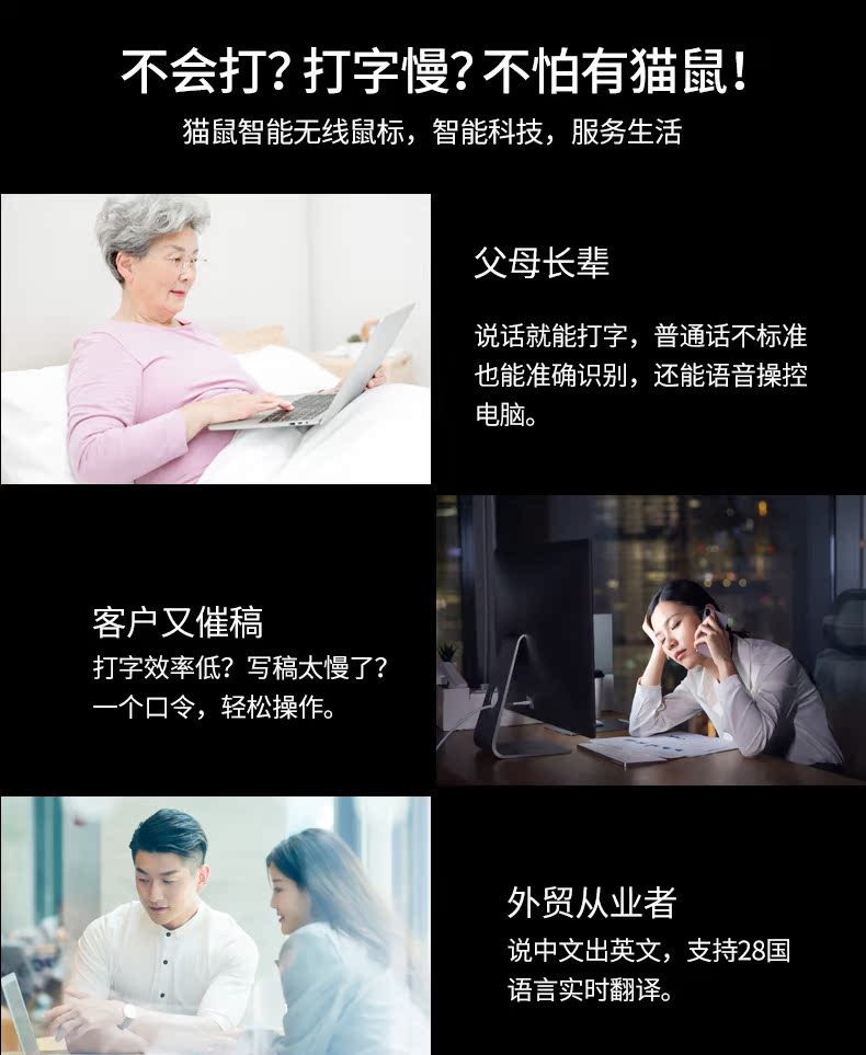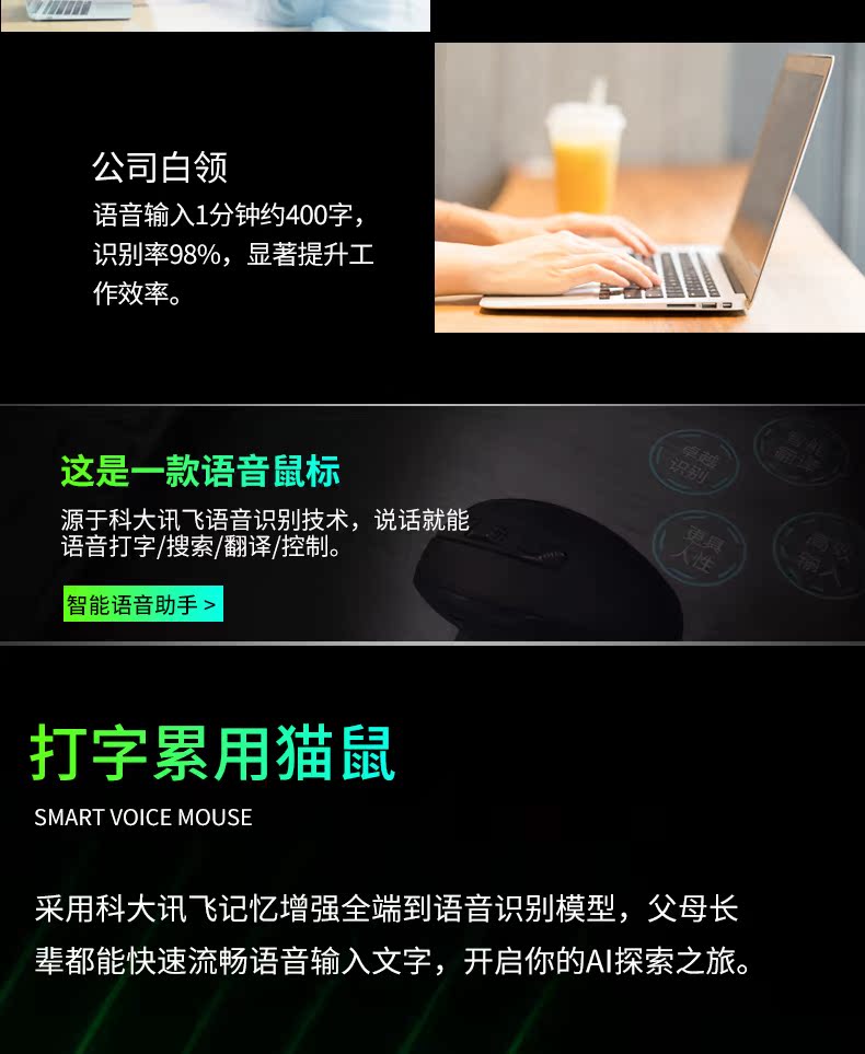 超强国货来袭!智能语音鼠标,办公游戏利器!双声控输入,语音打字,比传统打字节约了太多时间!支持各地方言和26国语言,超强大的智能语音识别,超出色的手感体验,还不快pick它!