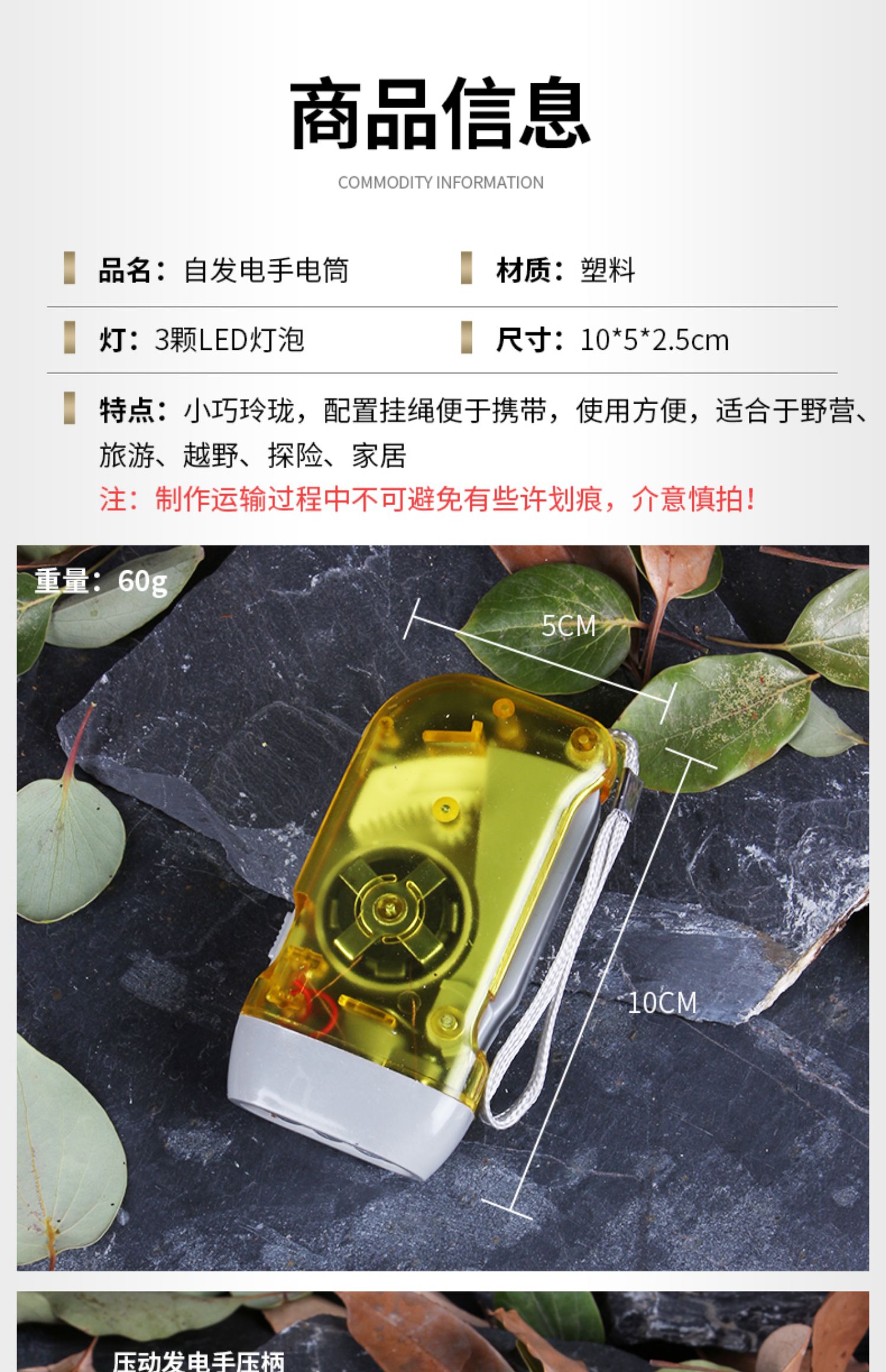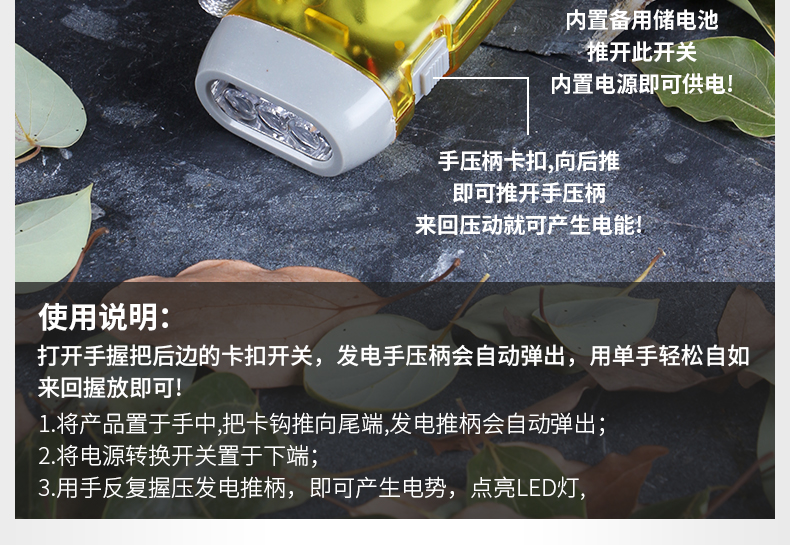 【佛伦佛】自发电led灯泡手电筒,小巧玲珑,配置挂绳便于携带,使用方便,适合于野营、旅游、越野、探险、家居。