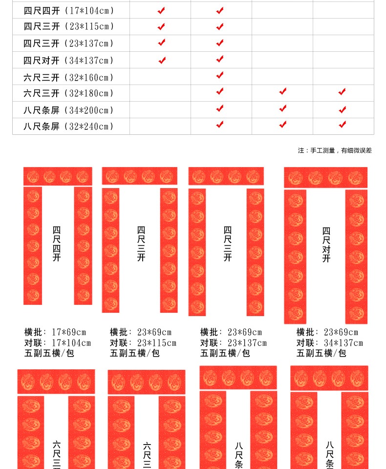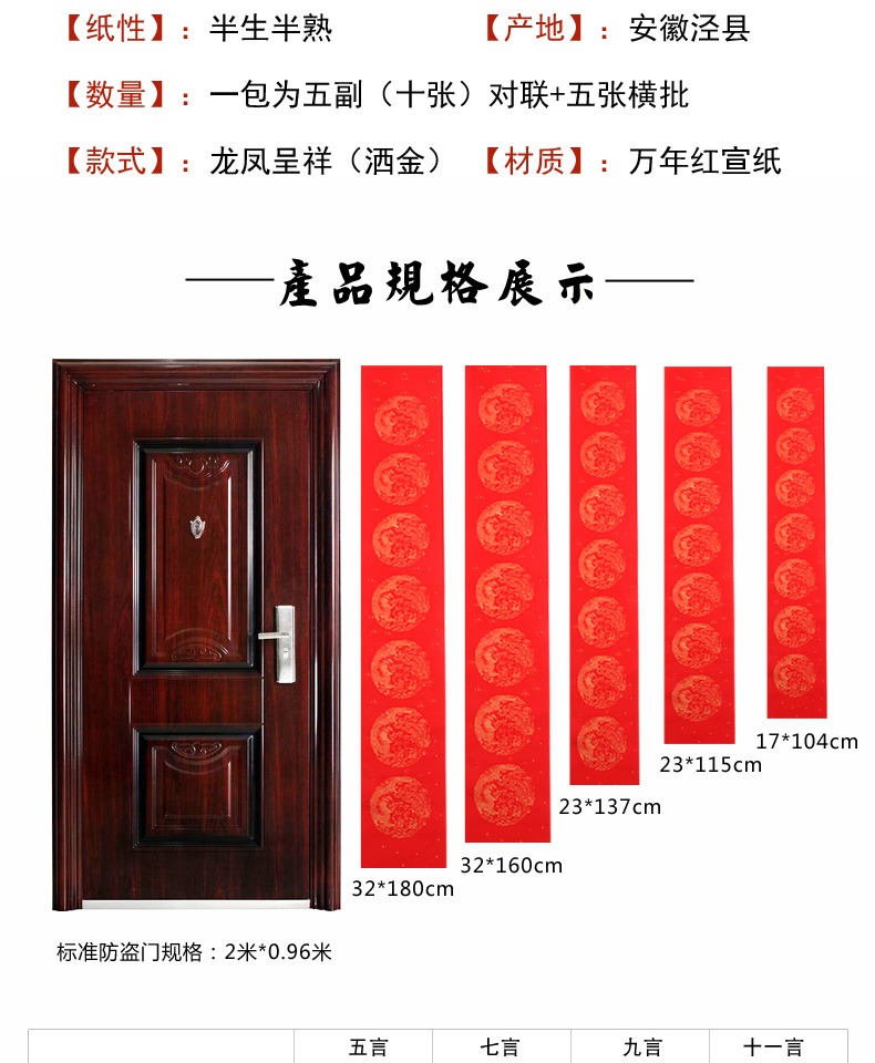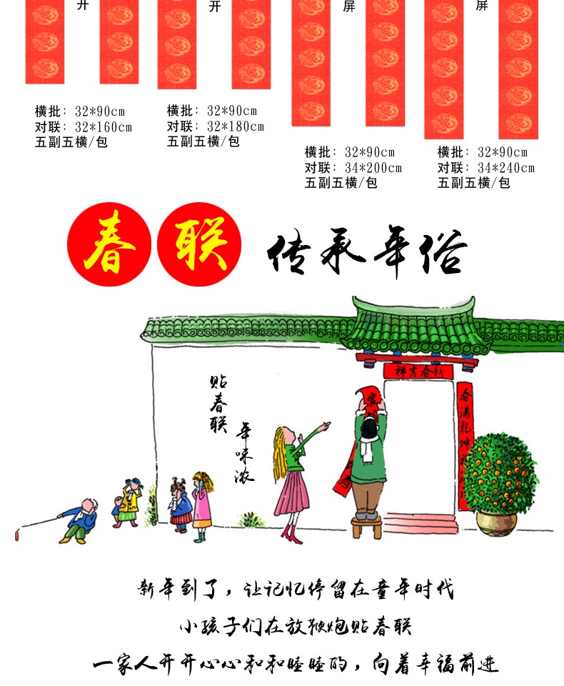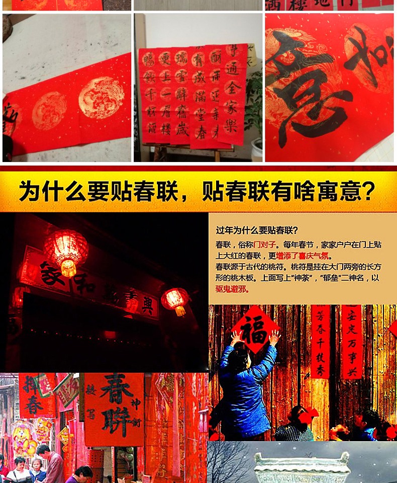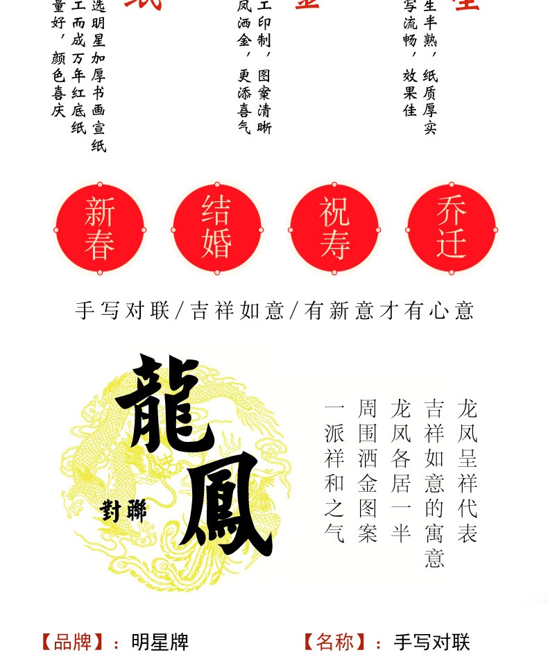 买一送一,多买多送,多规格可选,手写对联纸,万年红宣纸,纸张加厚,书写流畅,烫金图案,用料讲究,用心书写给春节增添心意。